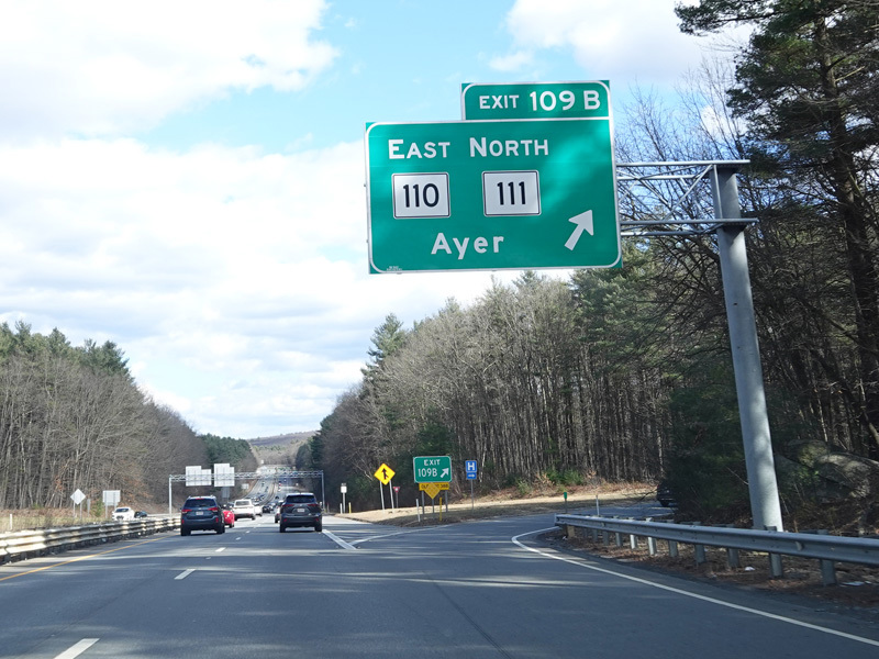 Exits 109A-B are for Ayer Road (MA 110/MA 111).