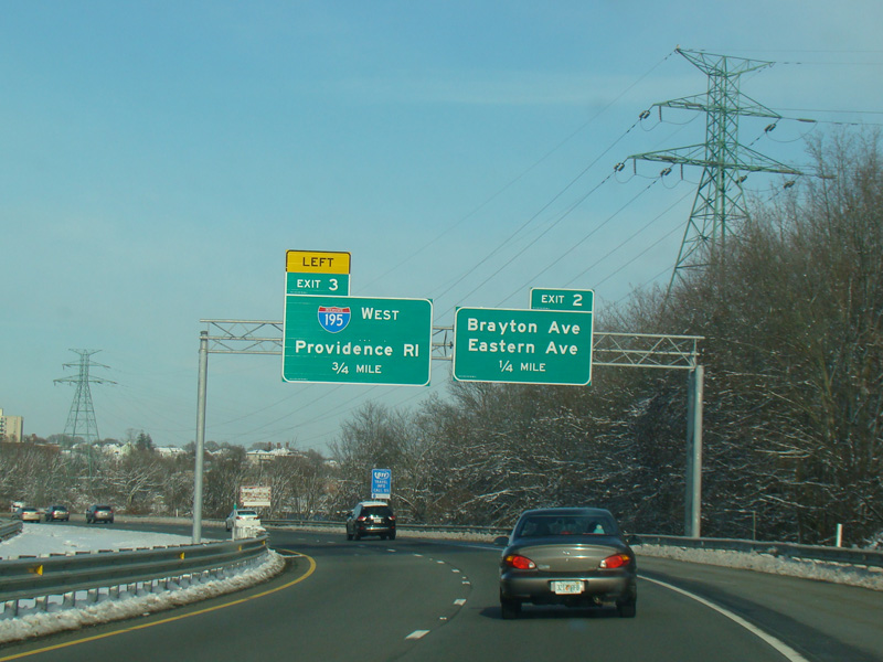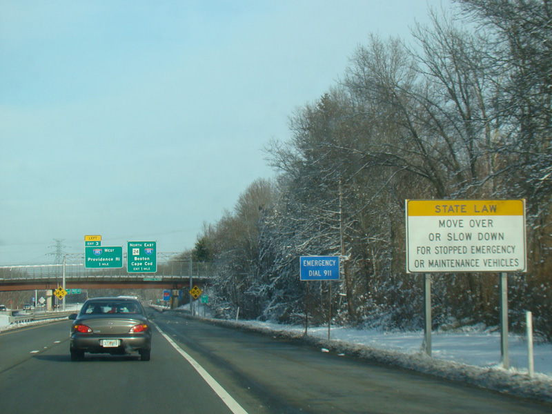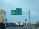 Welcome to Massachusetts! The Fall River Expressway changes designation from RI 24 to MA 24 at the state line. Exits 1A-B are for William S. Canning Boulevard (MA 81).
