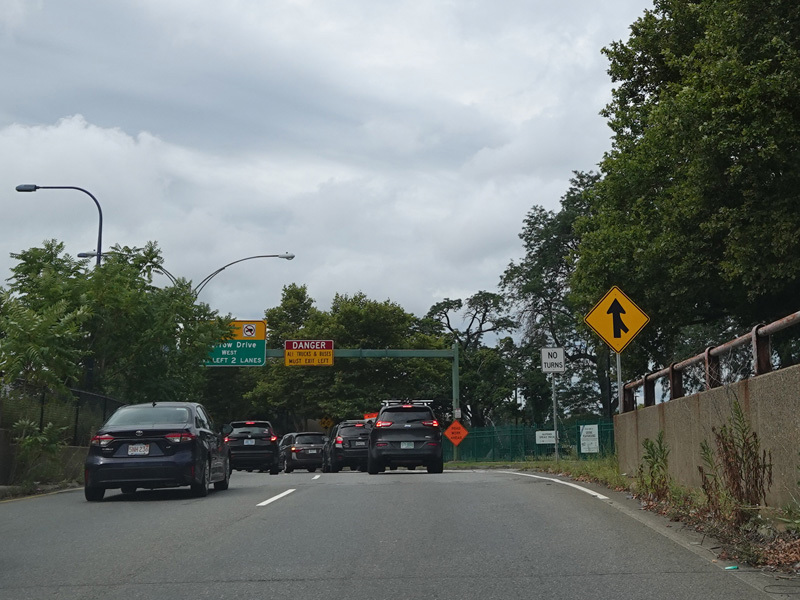 The roadway splits. Bear left to stay on MA 3. Embankment Road continues straight ahead as MA 28 for one exit before becoming Storrow Drive.