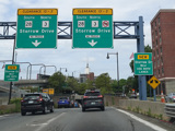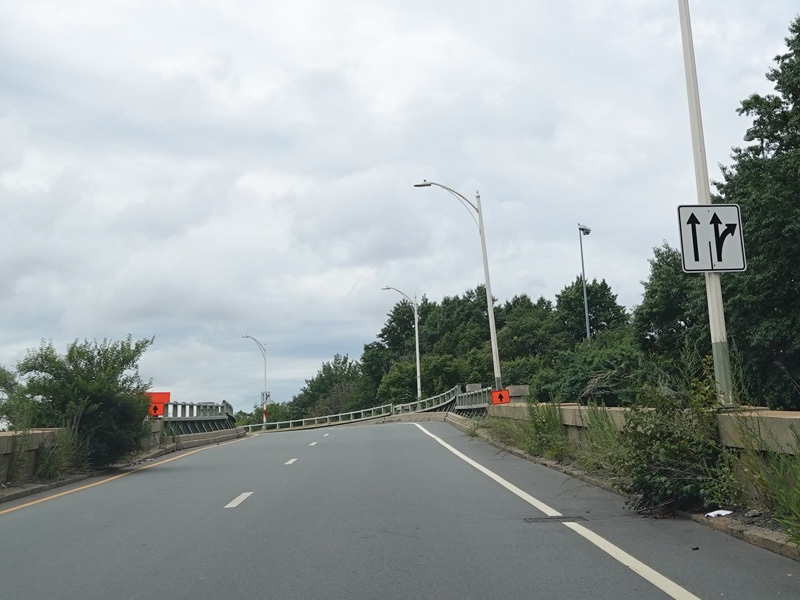 On the other side of the bridge, there is an exit for Memorial Drive on the right. Main Street is straight ahead. Take the exit to stay on MA 3. The signage erroneously indicates that Memorial Drive is designated US 3 here, but the designation doesn't change until a short distance further.