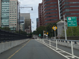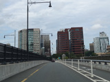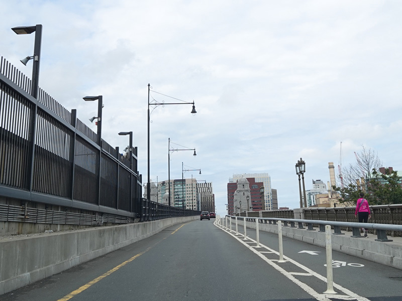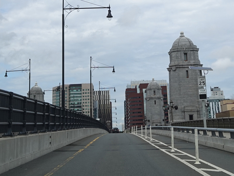The ramp ends at a stop sign. Turn right onto the Longfellow Bridge to stay on MA 3.