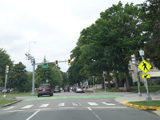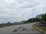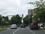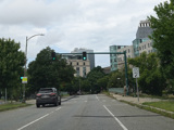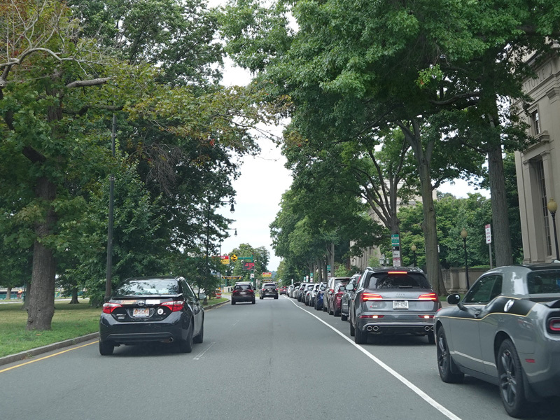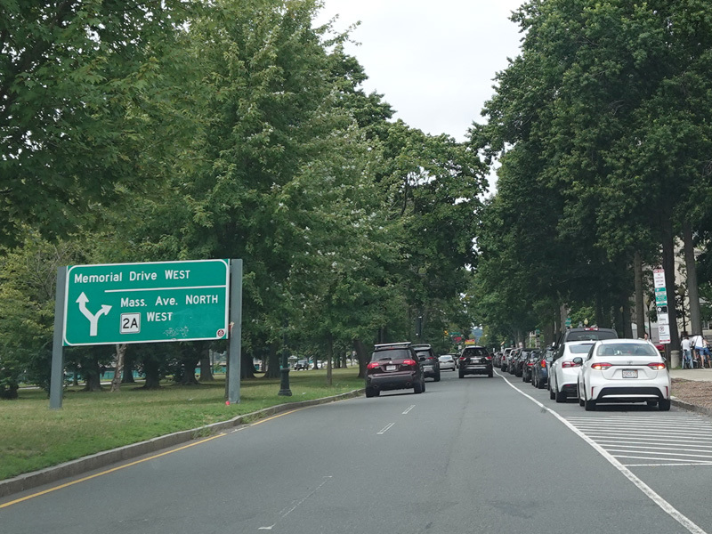 Memorial Drive runs west through Cambridge. The Charles River is on the left.