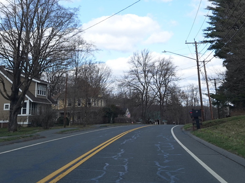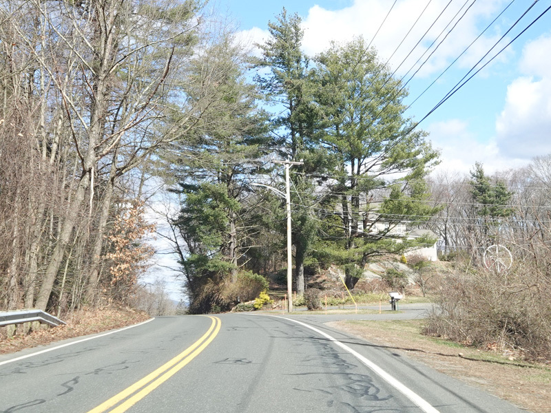Hadley Street begins at MA 116 in South Hadley. It runs west toward the Connecticut River and then curves to the north.