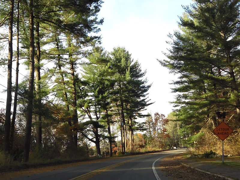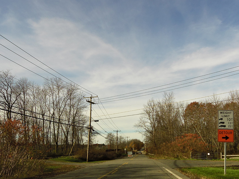 These pictures show Ashley Falls Road as it appeared before the bridge over the Housatonic River was replaced. At the time, the bridge was closed to automotive traffic, and all vehicles had to detour around it.
