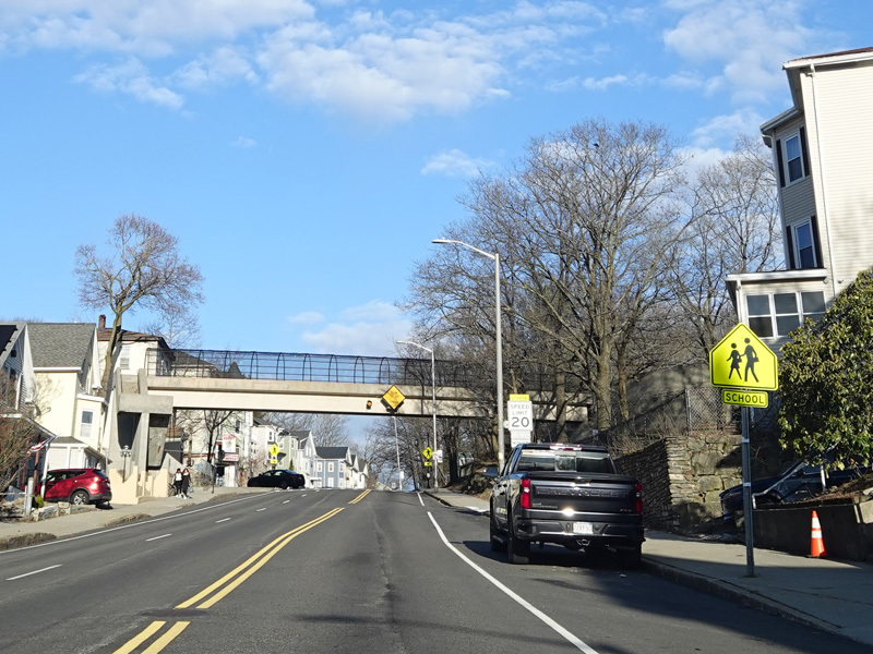 Belmont Street widens to six lanes.