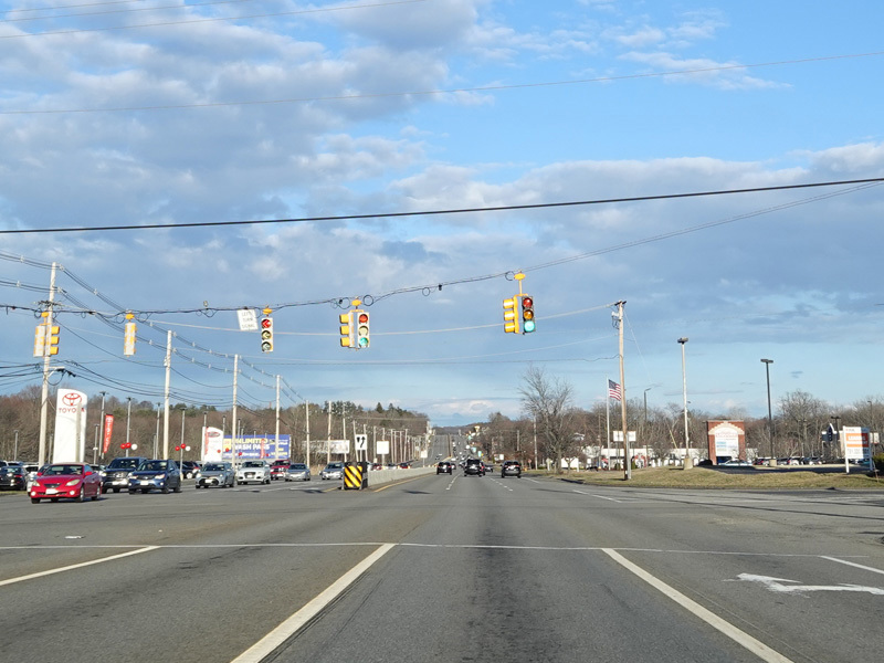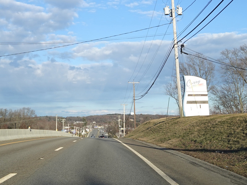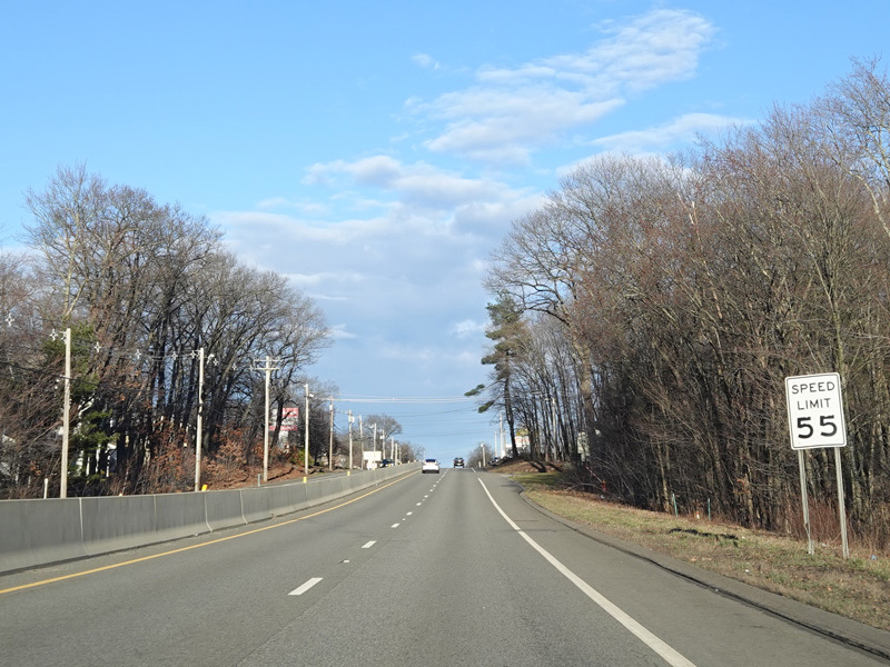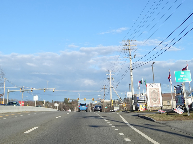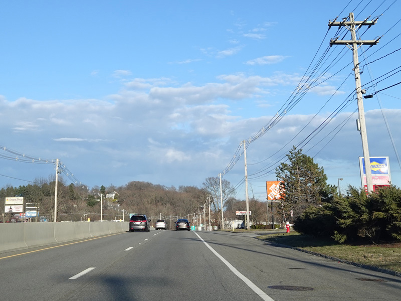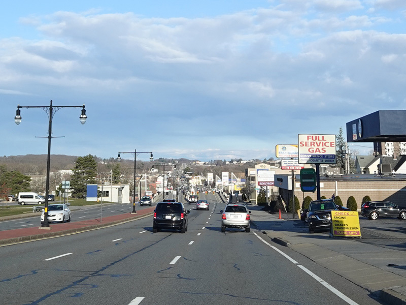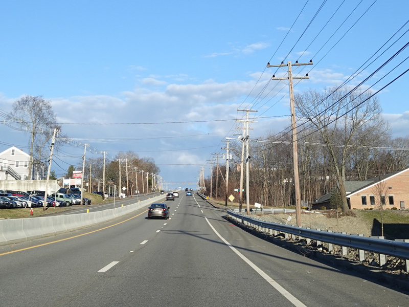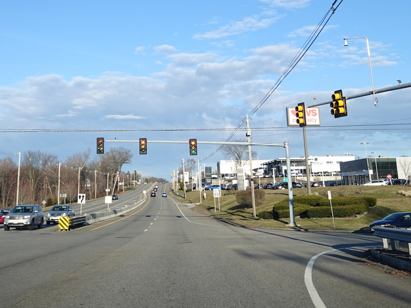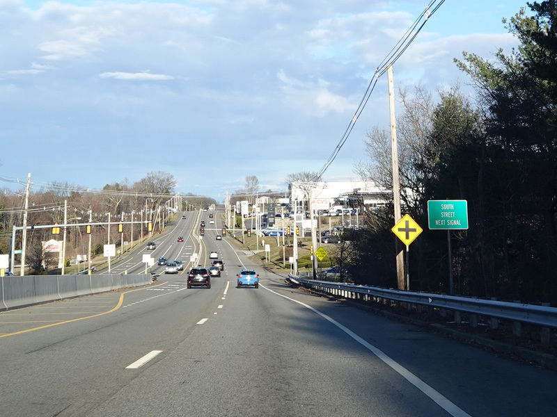 Boston Turnpike continues east as a four-lane divided highway. There is a traffic light at South Street.