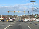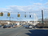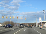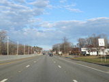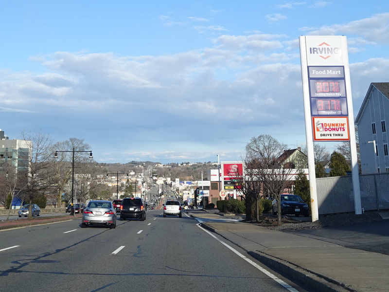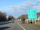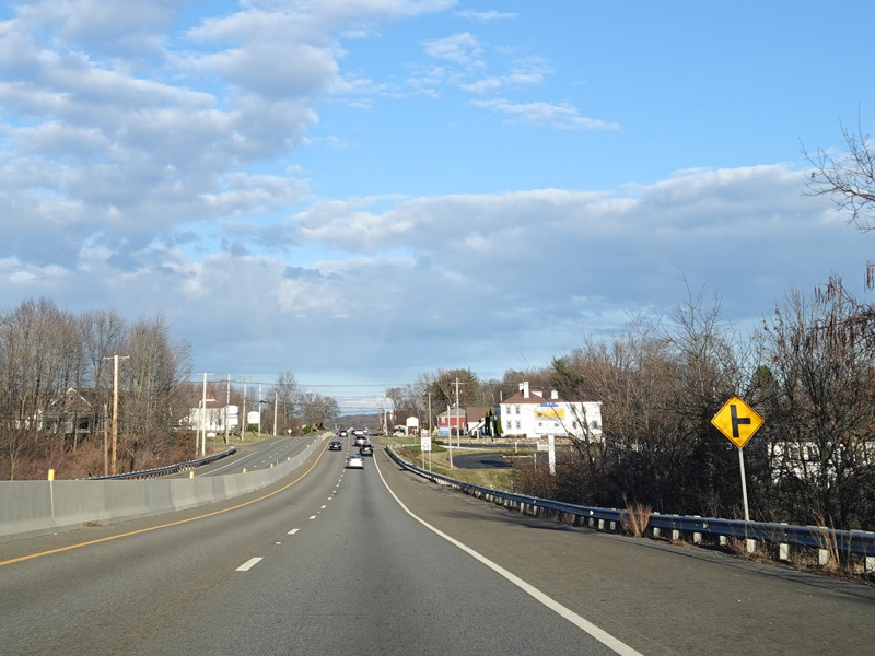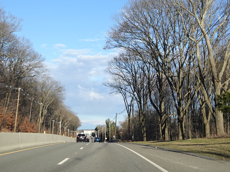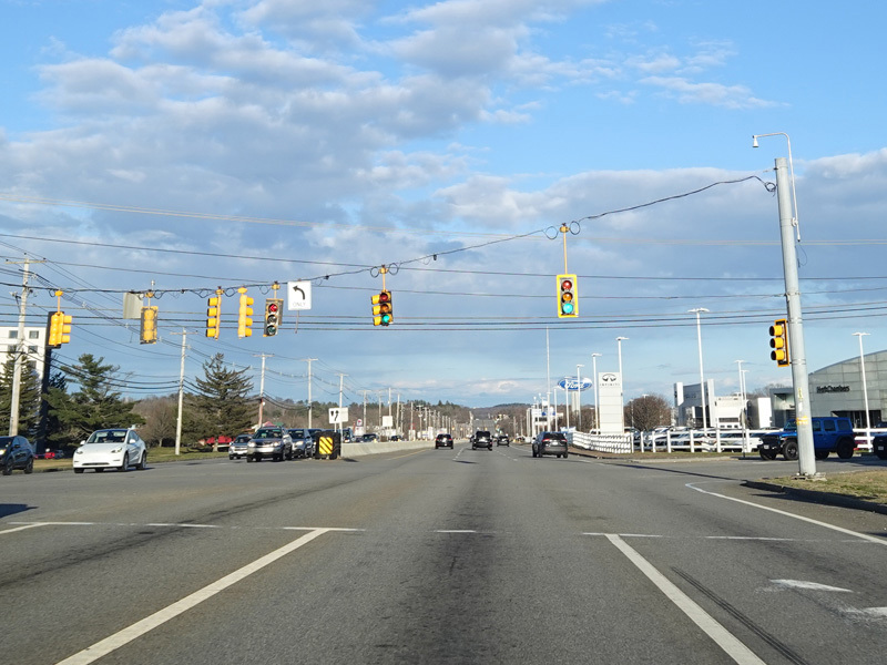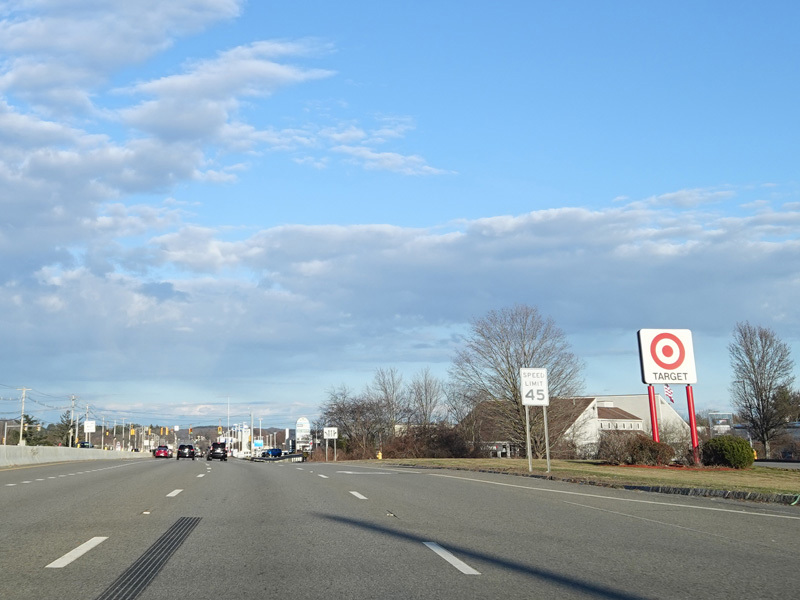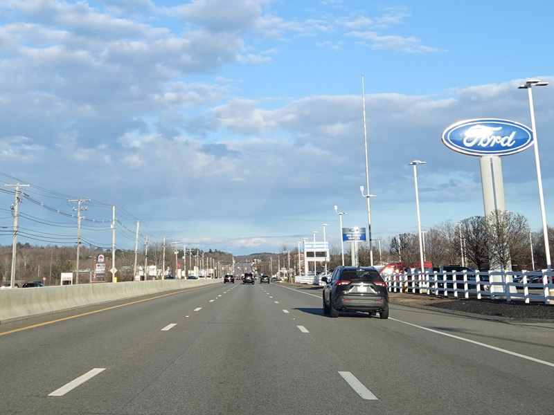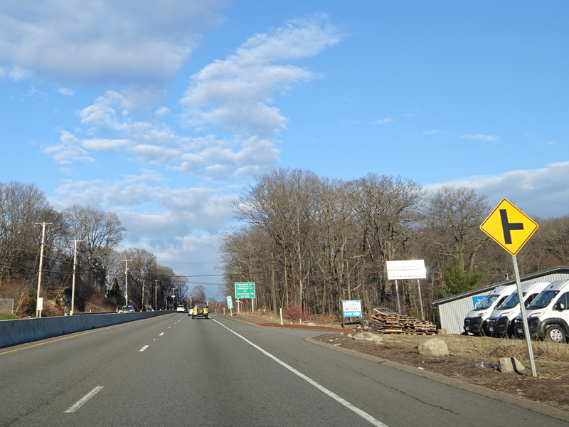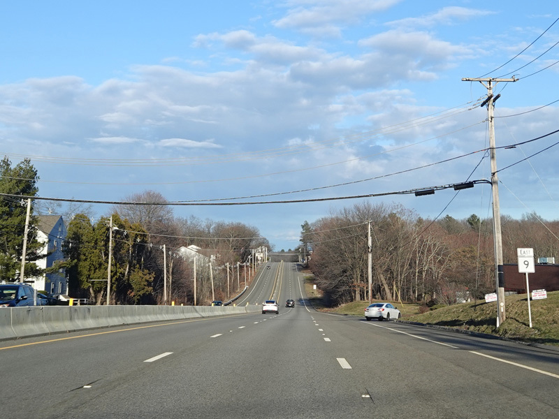 Boston Turnpike continues east as a four-lane divided highway. There is a traffic light at South Street.