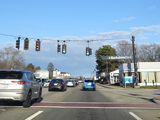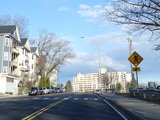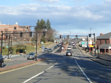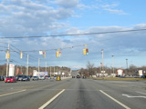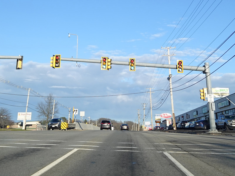 Turnpike Road narrows down to four lanes and continues to the east. There is a traffic light at Lyman Street.