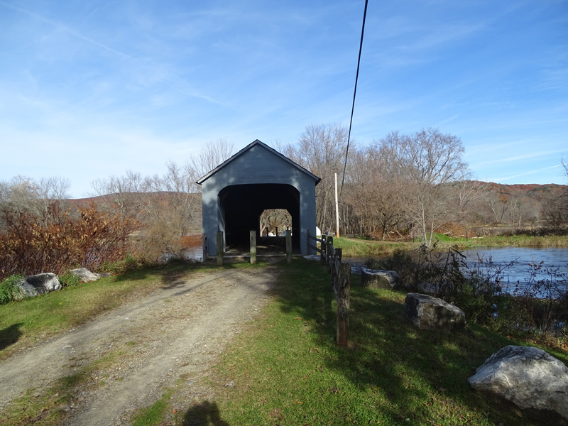 These pictures show the Sheffield Covered Bridge, which crosses the Housatonic River and is located down a short unpaved road from US 7 in Sheffield, and the surrounding area. The bridge is closed to automotive traffic and open to pedestrians.
