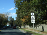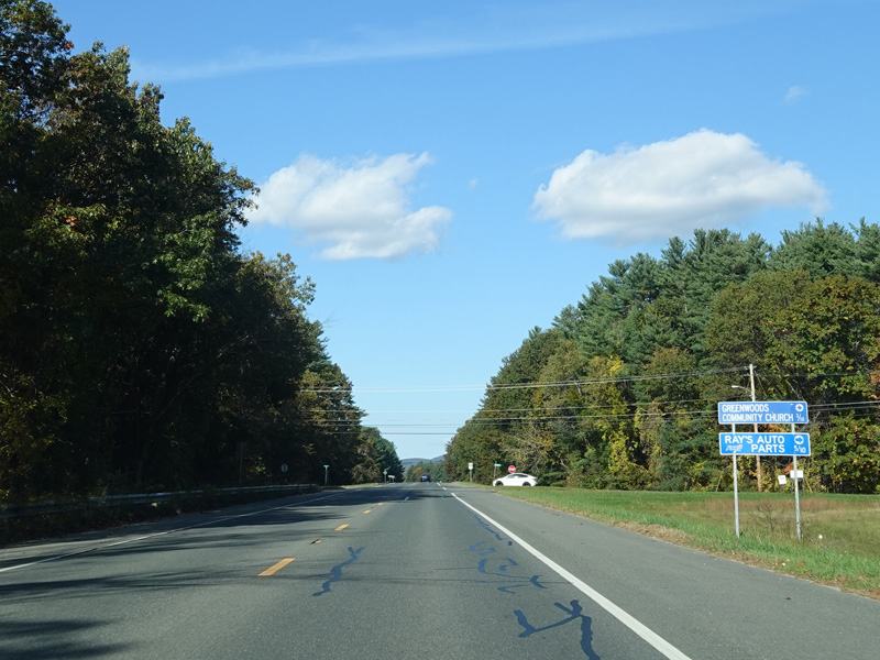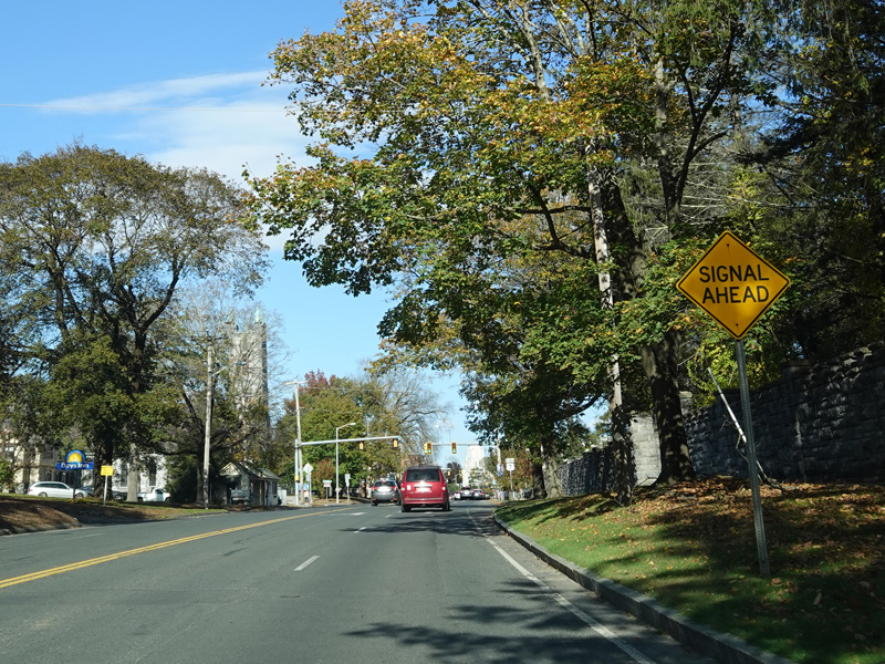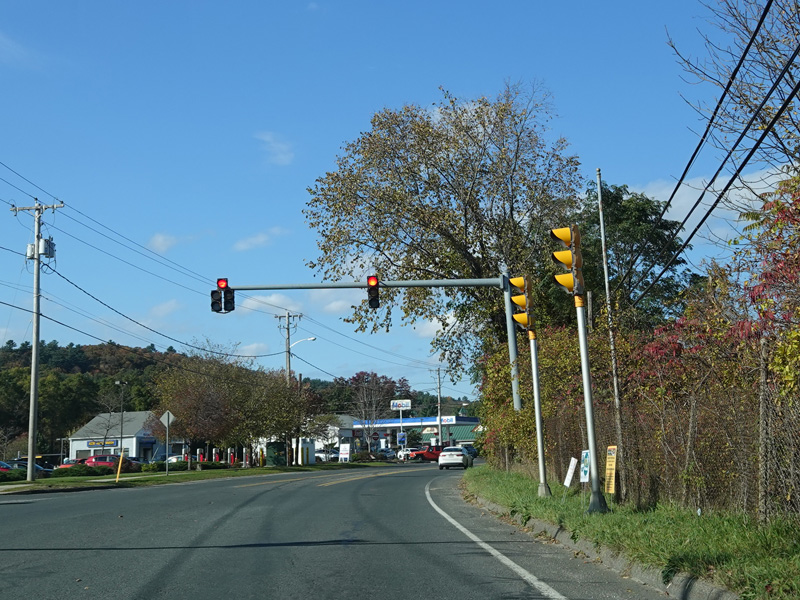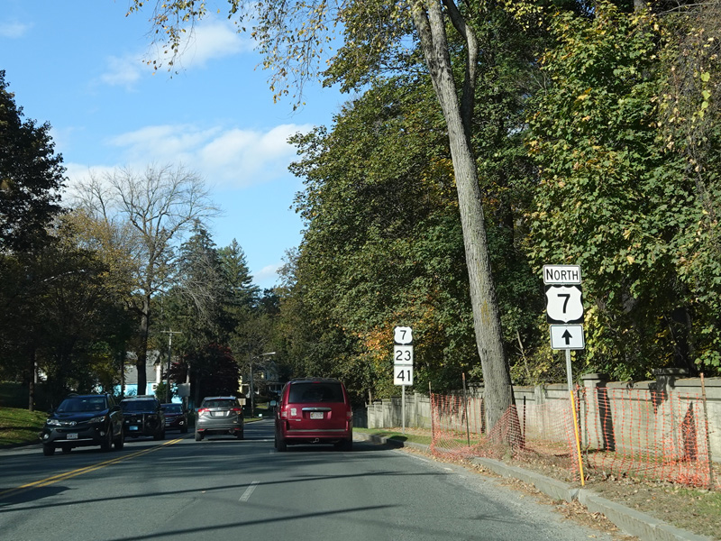 There is a traffic light at Maple Avenue (MA 23/MA 41). Turn left to go west and south. Eastbound and northbound MA 23/MA 41 is multiplexed with US 7 along Main Street straight ahead.