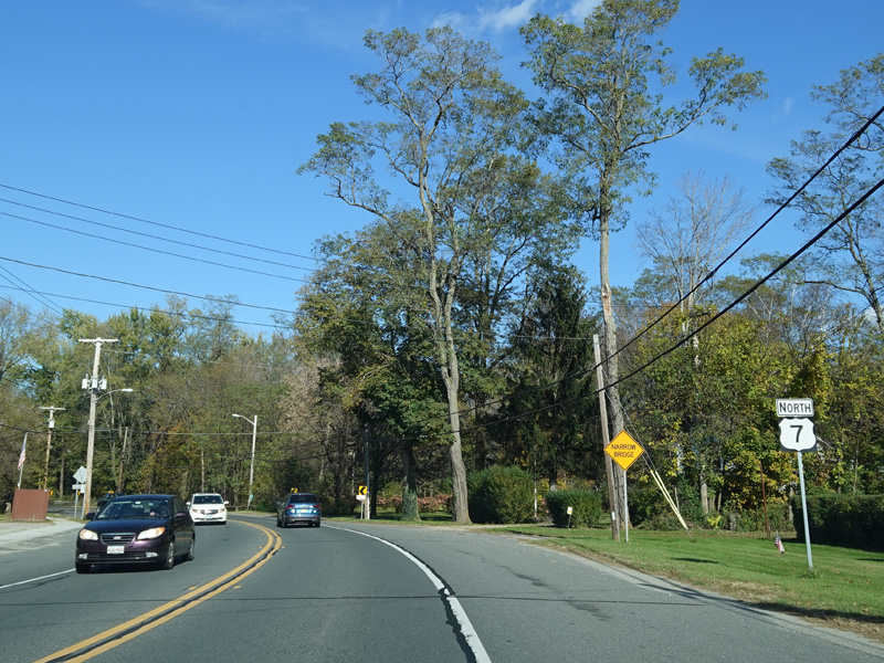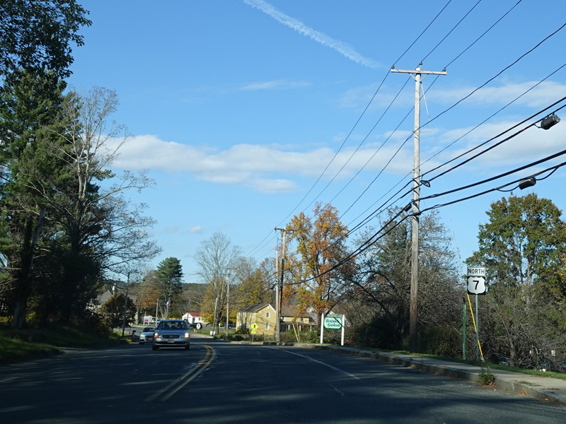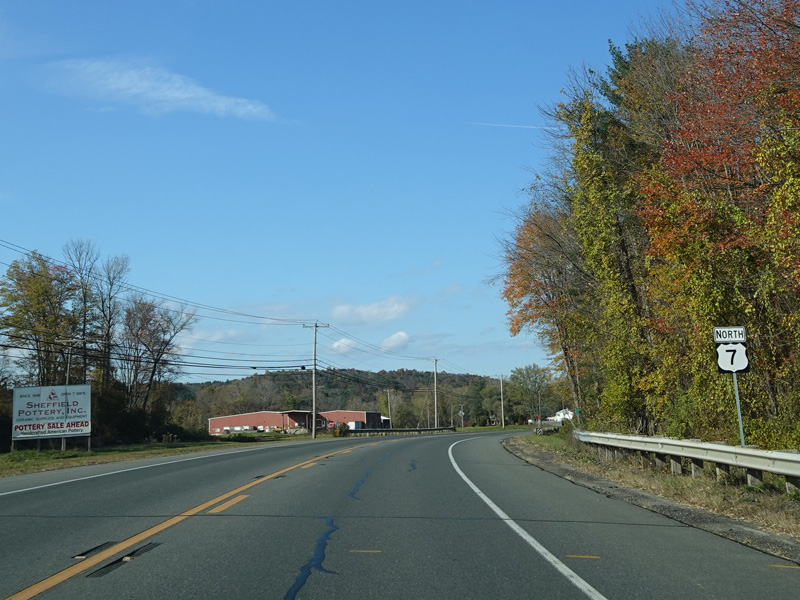 Welcome to Massachusetts! US 7 enters the state from Connecticut and runs north through Sheffield as a two-lane undivided road.