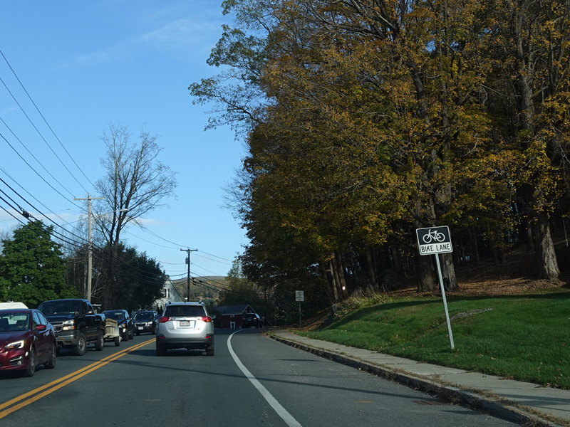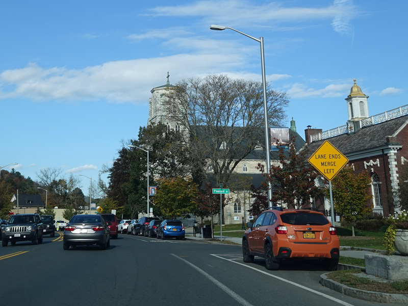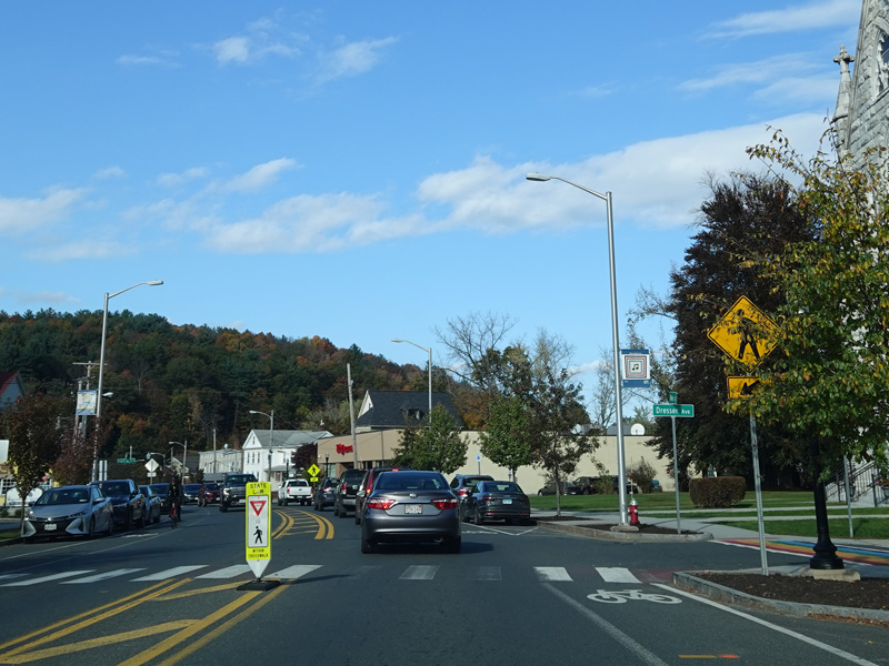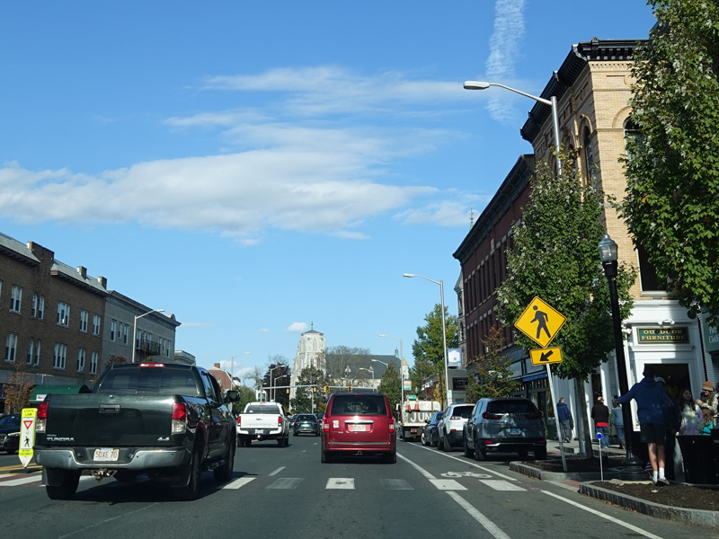 Main Street runs north through the downtown area of Great Barrington as a four-lane undivided road.