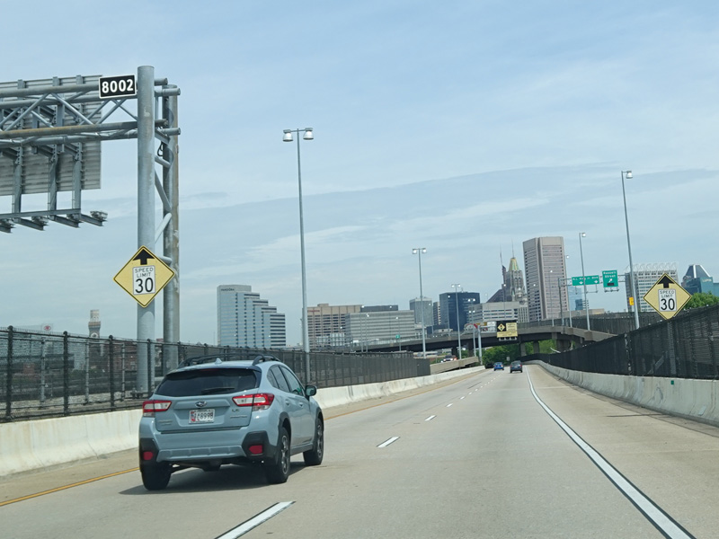 I-395 begins at I-95 in Baltimore. The one and only exit is for Martin Luther King Jr. Boulevard, Lee Street, and Russell Street.