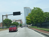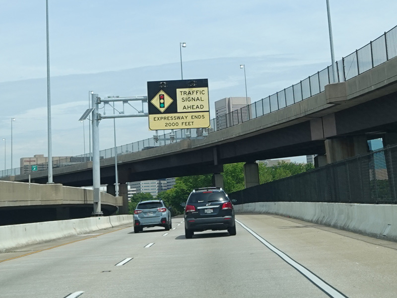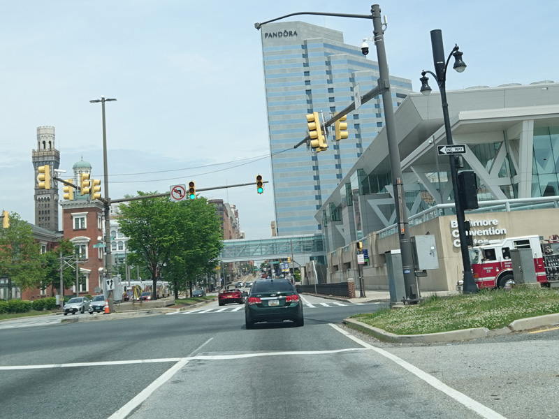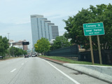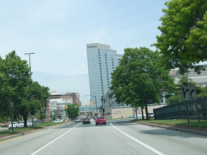 After a short distance, the expressway ends at a traffic light. Howard Street is straight ahead. Turn right for Conway Street.