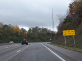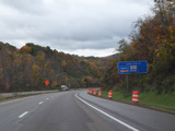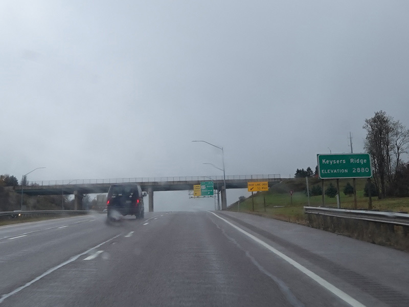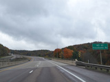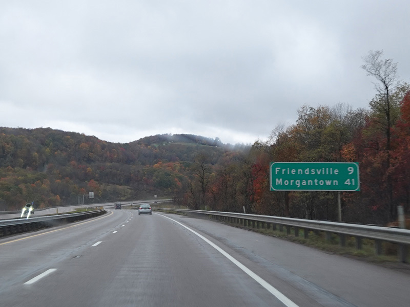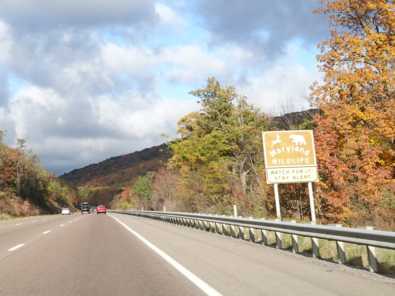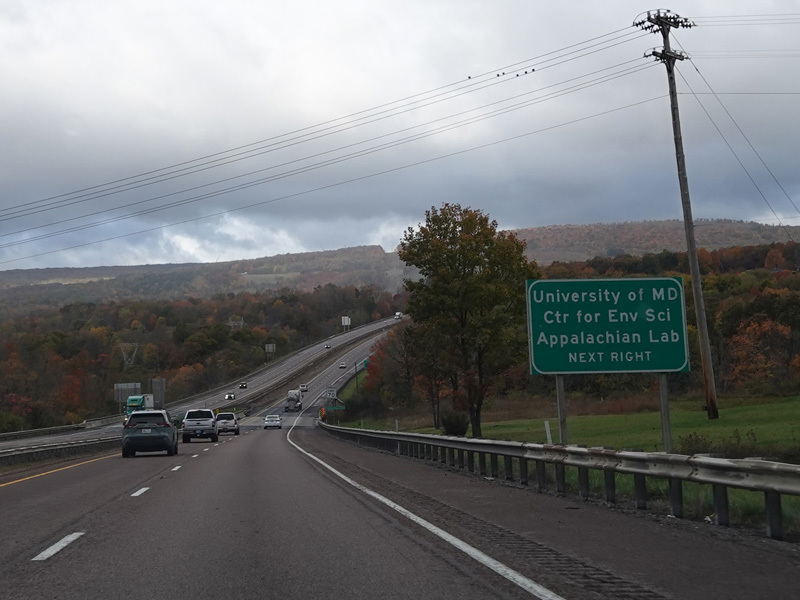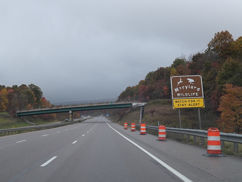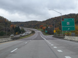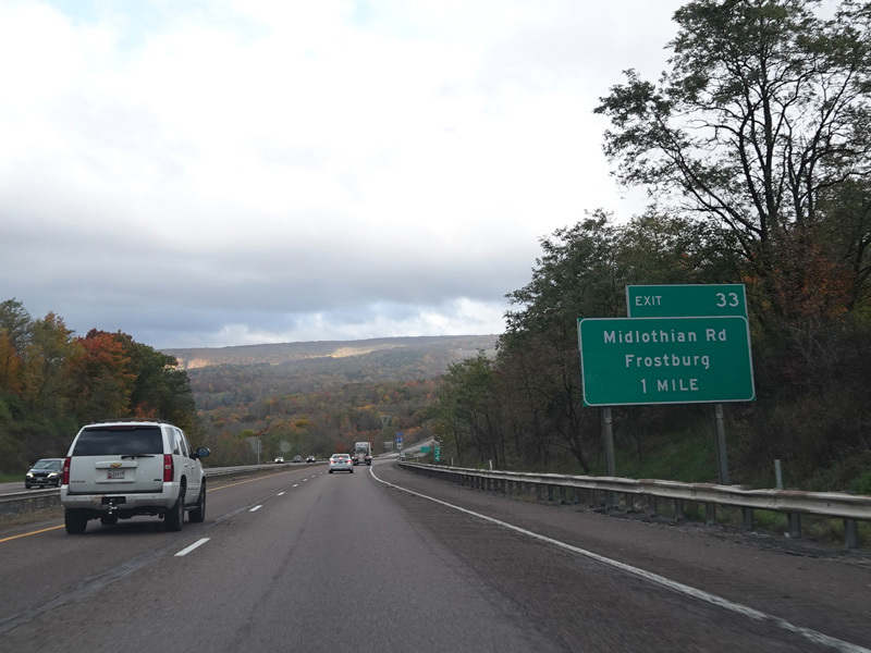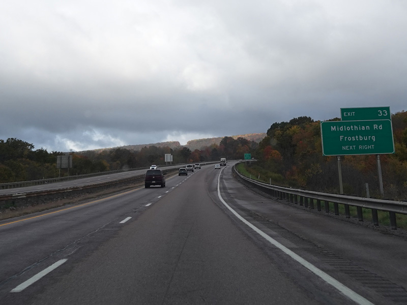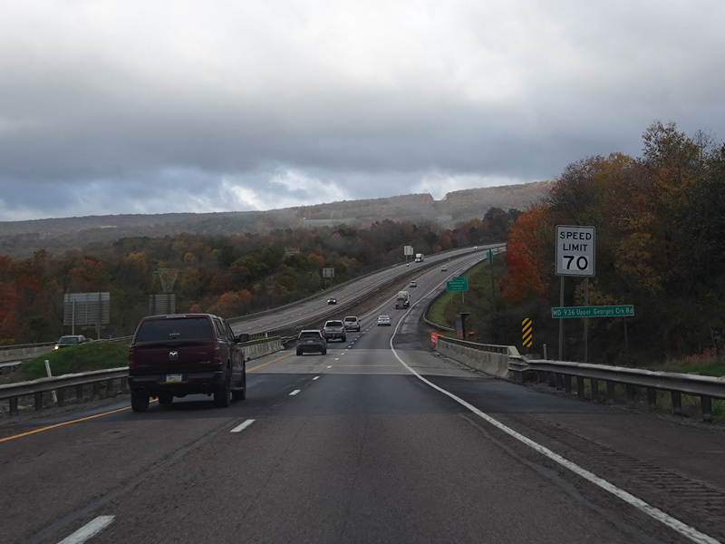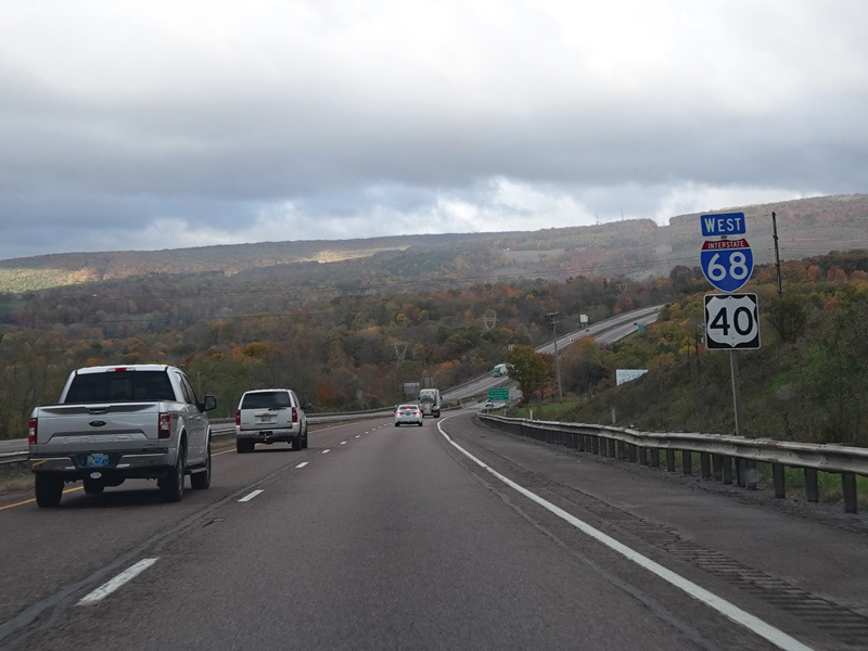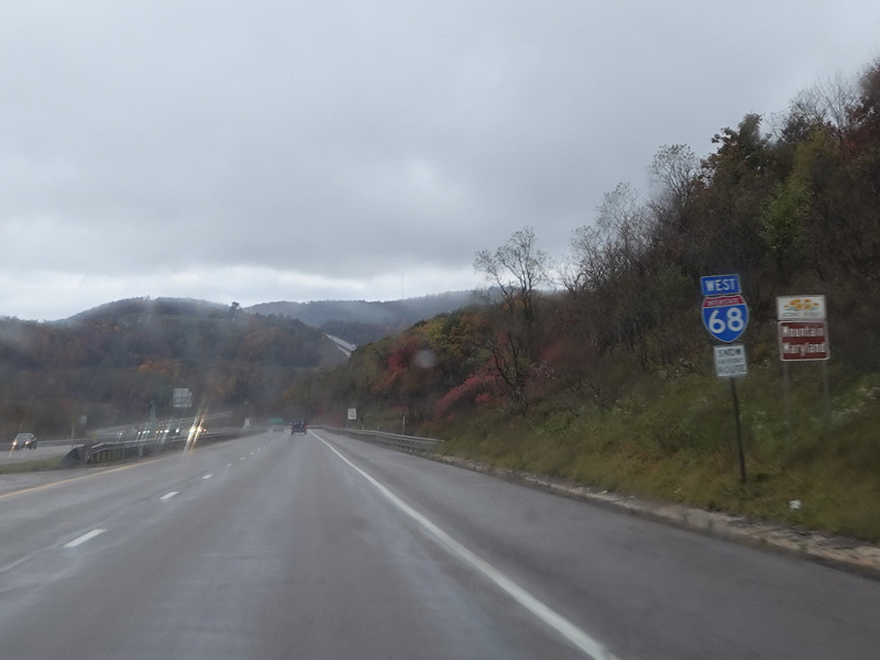 Heading out of the Cumberland area, the distance between exits gets longer. There is a third westbound lane as I-68 climbs up into the mountains.