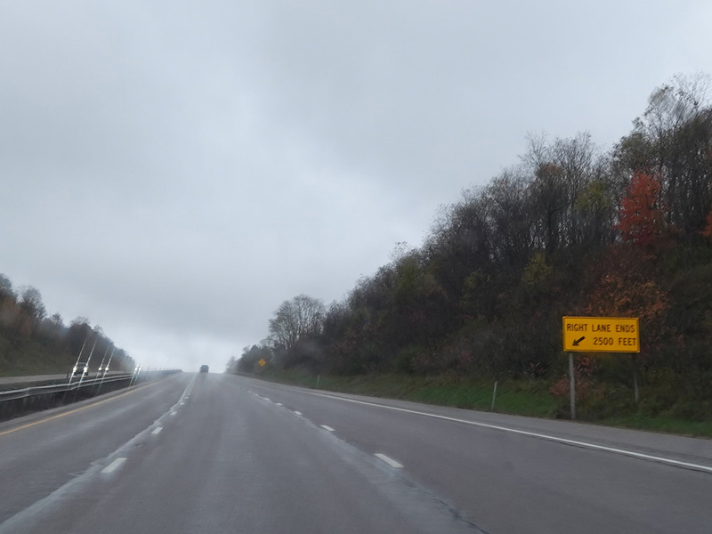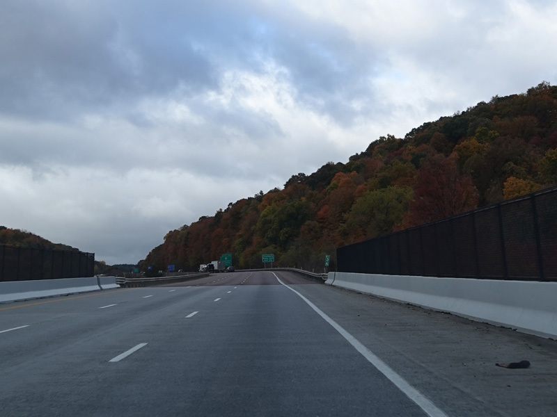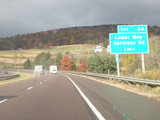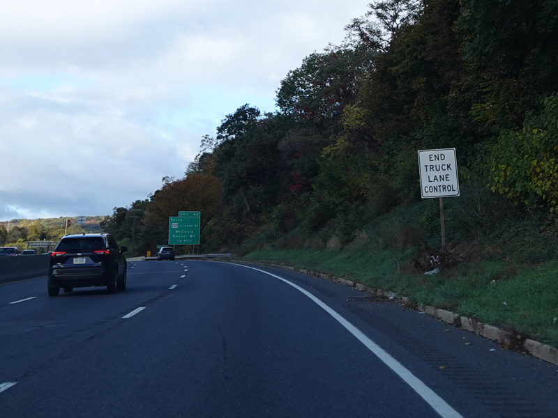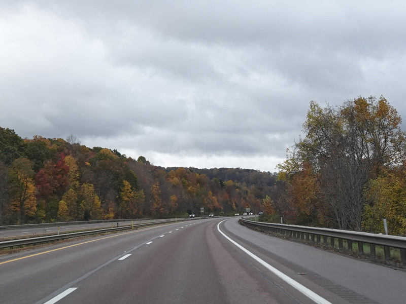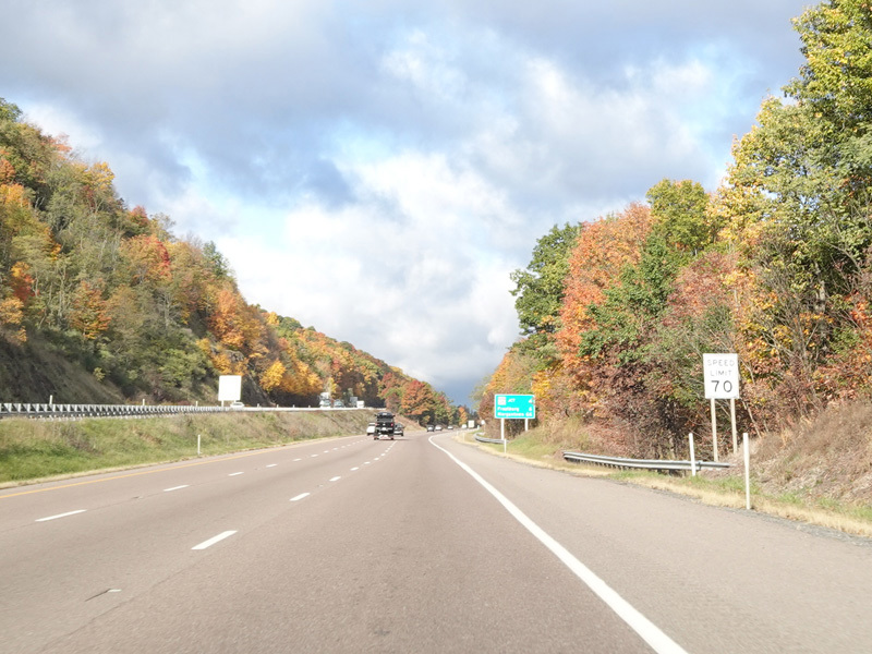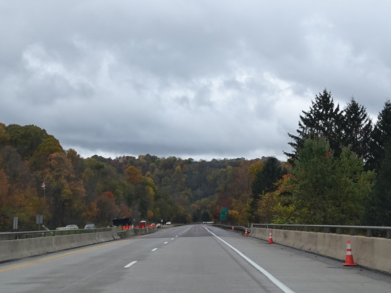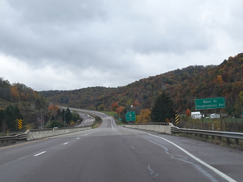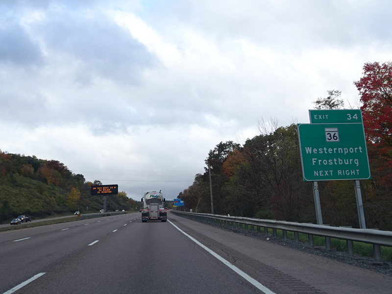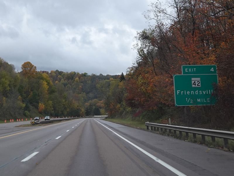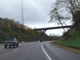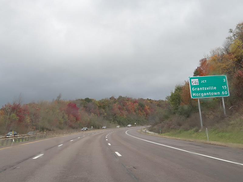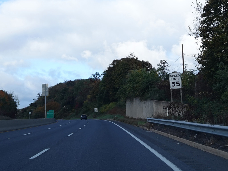 Heading out of the Cumberland area, the distance between exits gets longer. There is a third westbound lane as I-68 climbs up into the mountains.