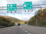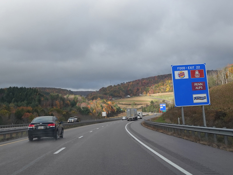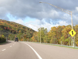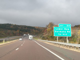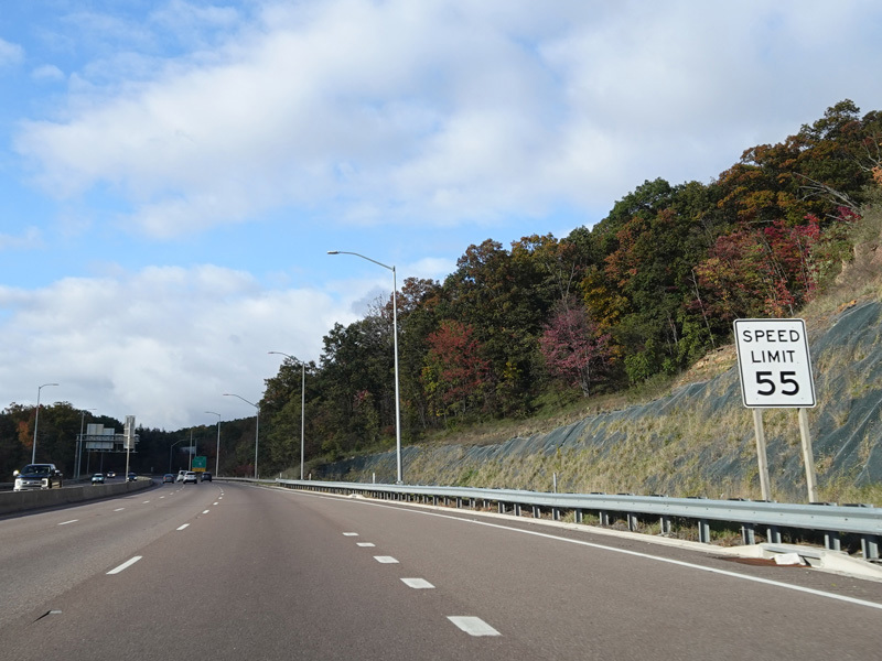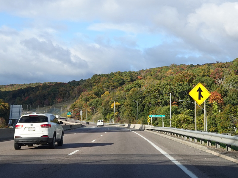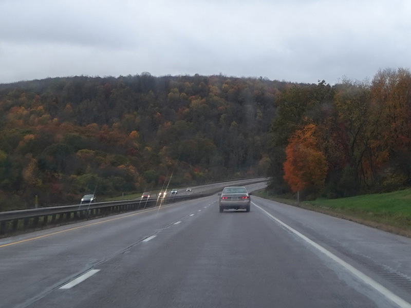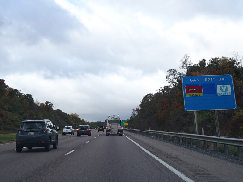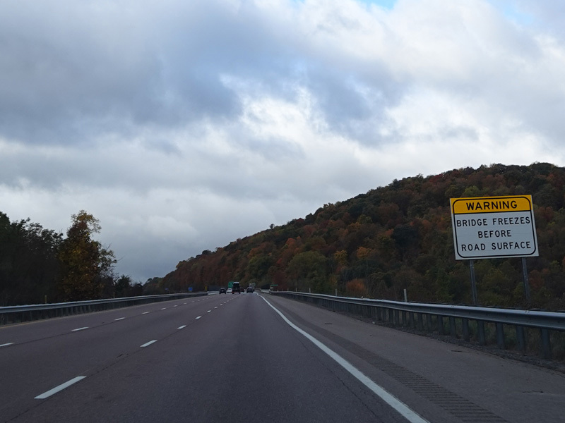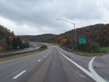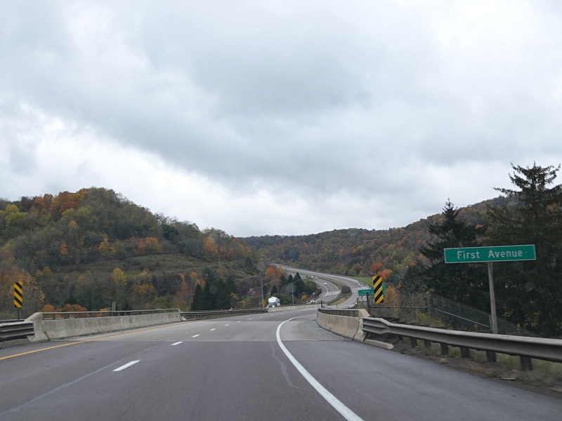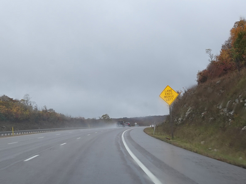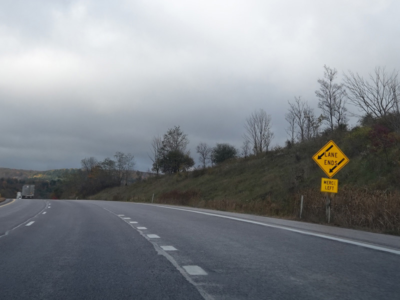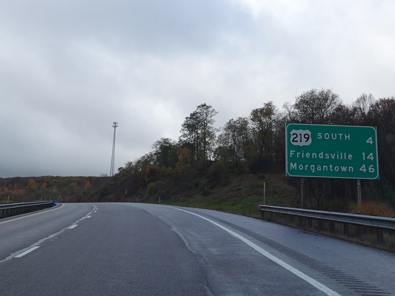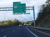 Heading out of the Cumberland area, the distance between exits gets longer. There is a third westbound lane as I-68 climbs up into the mountains.