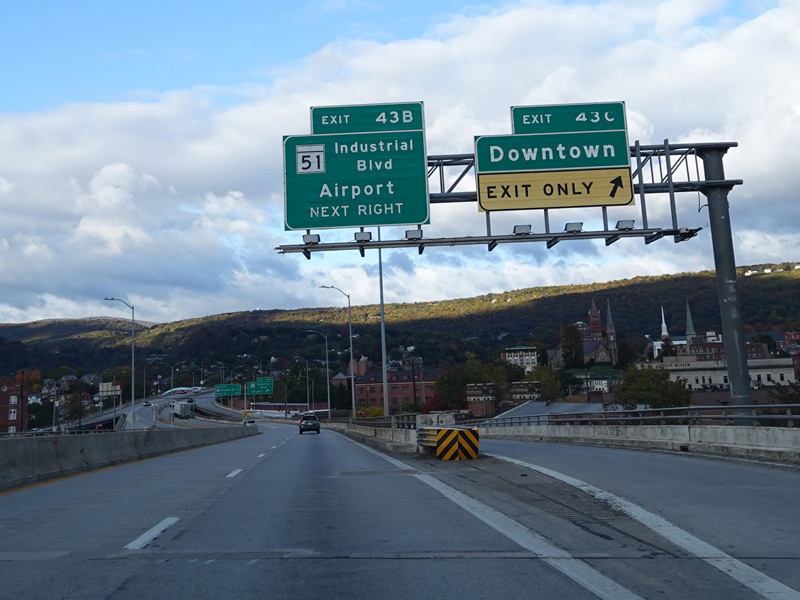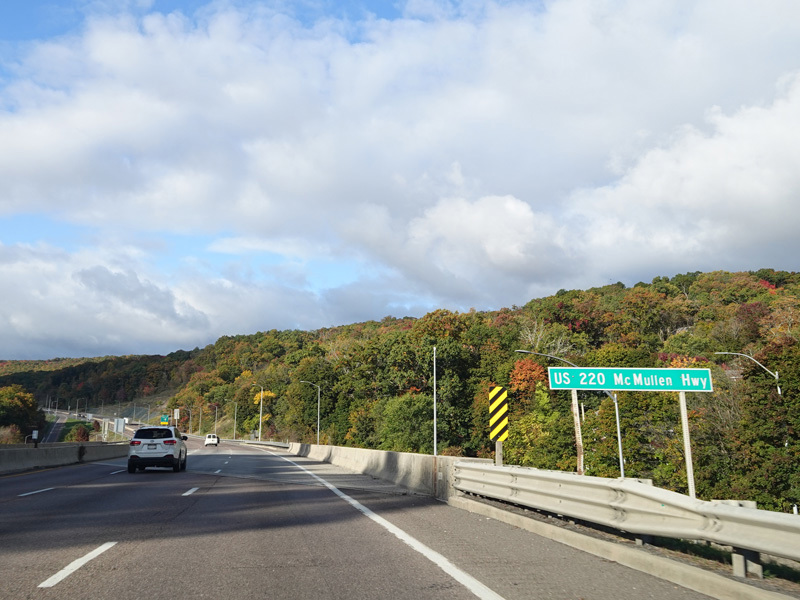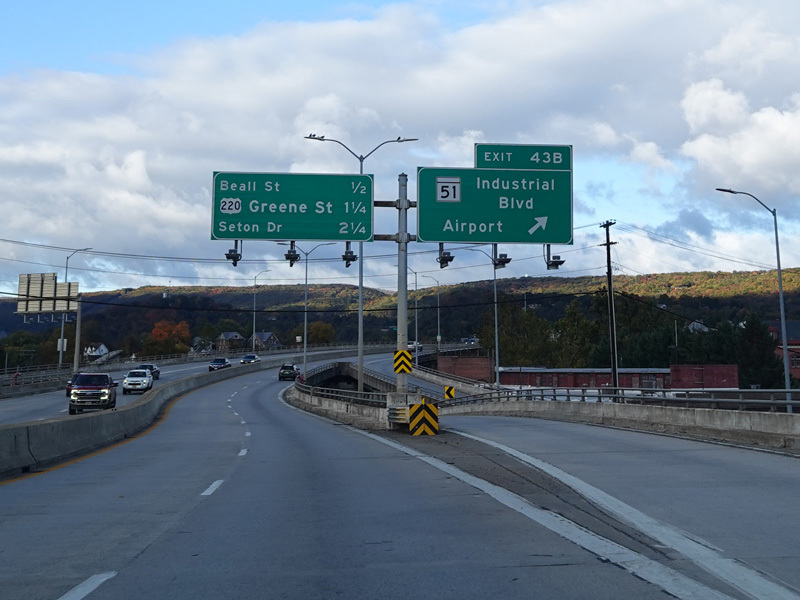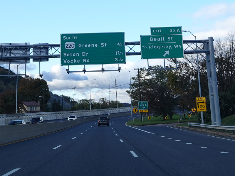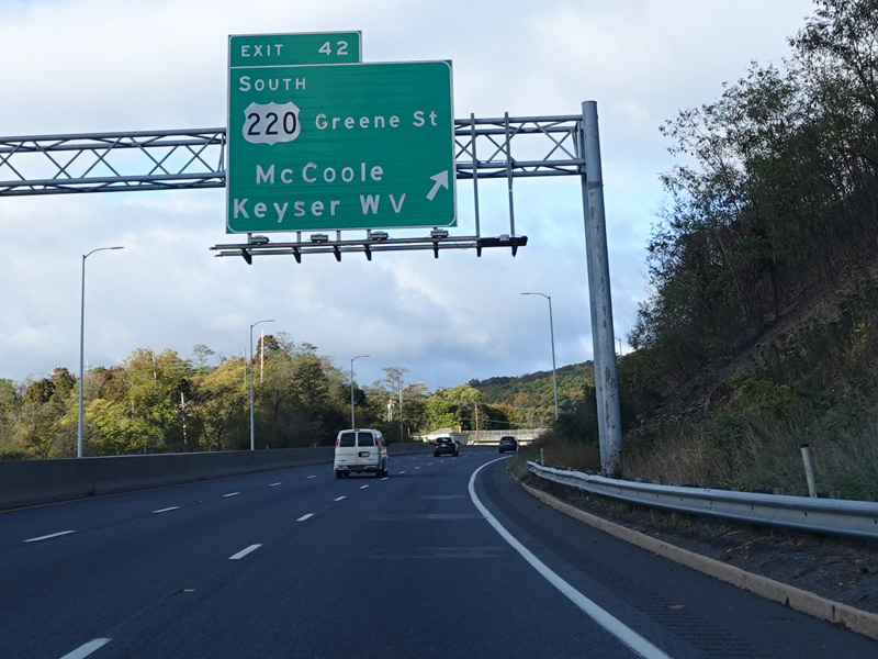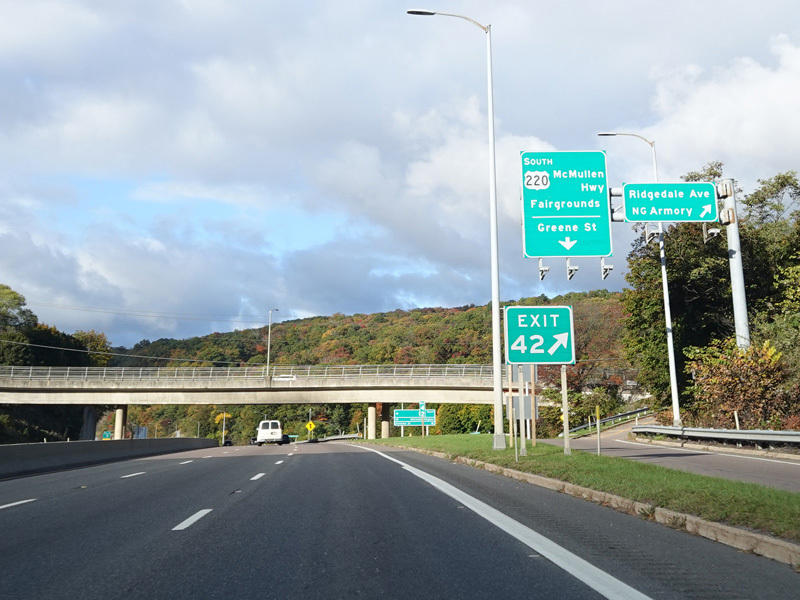 Exit 42 is for Greene Street (US 220) south, which changes names south of the interchange to become McMullen Highway.