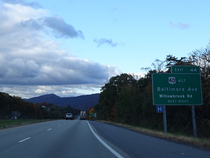 Exit 44 is for Baltimore Avenue (Alternate US 40) and Willowbrook Road (MD 639).