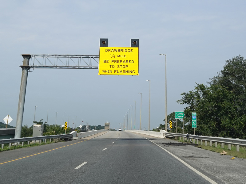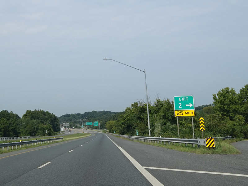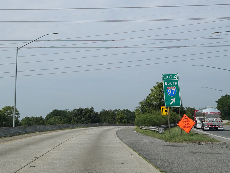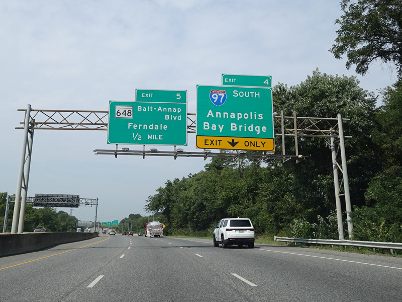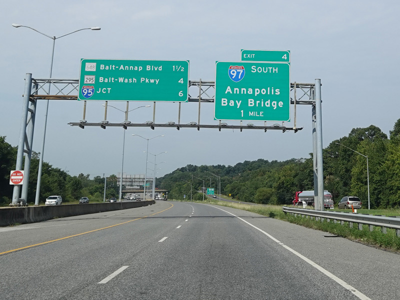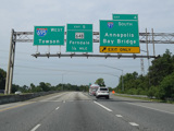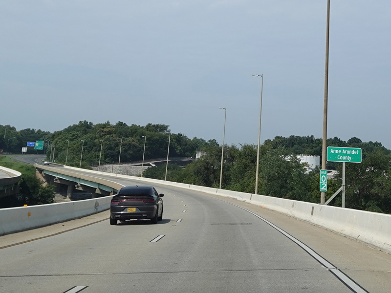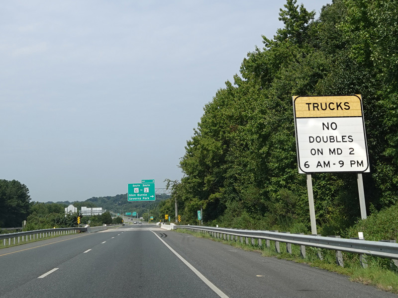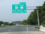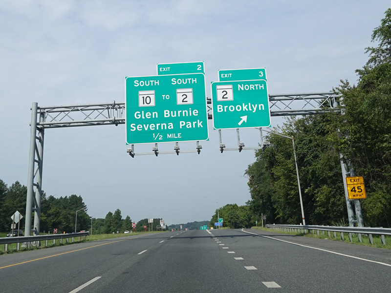 Exit 3 is for Governor Ritchie Highway (MD 2) north. Exit 2 is for the Arundel Expressway (MD 10) south and Governor Ritchie Highway (MD 2) south.