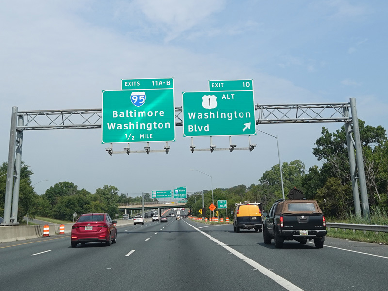 Exit 10 is for Washington Boulevard (Alternate US 1).