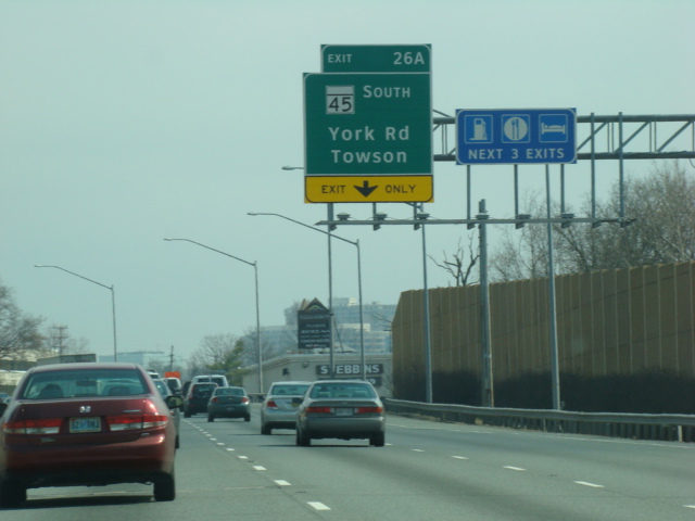 Exit 29A is for Cromwell Bridge Road. Exit 29B is for Loch Raven Boulevard (MD 542) south.