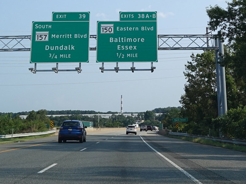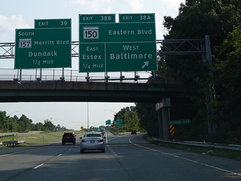 Exits 38A-B are for Eastern Boulevard (MD 150).
