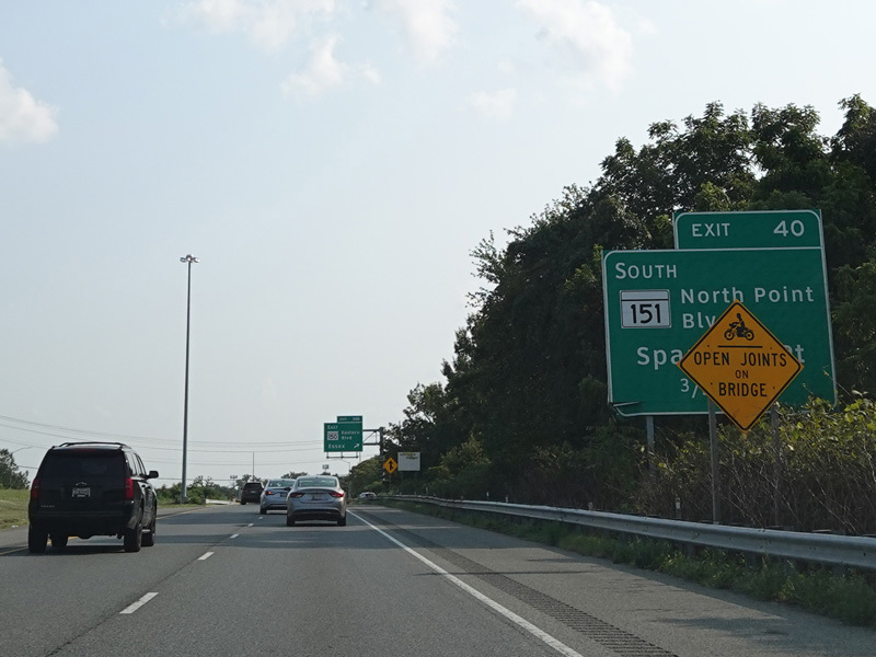 Exit 40 is for North Point Boulevard (MD 151) south.