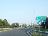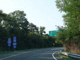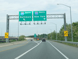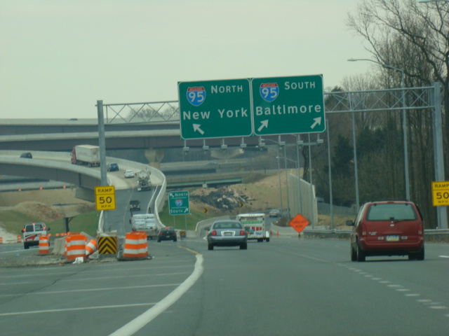 The ramp for exit 33 from westbound I-695 splits. Bear right to go north on I-95 or left to go south.