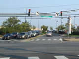 The ramp for exit 34 from westbound I-695 ends at a traffic light at Philadelphia Road (MD 7). Turn left to go east or right to go west.
