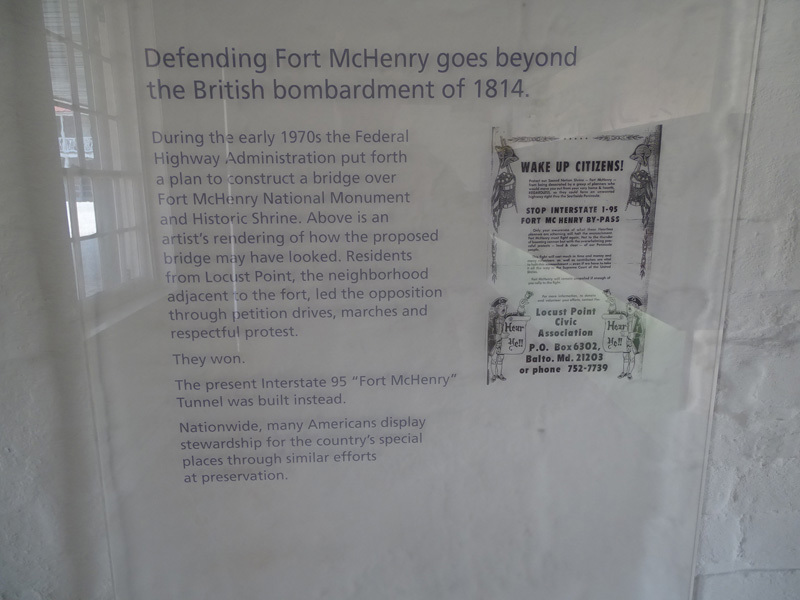 This plaque is found at the Fort McHenry National Monument and Historic Shrine, the site of the battle in the War of 1812 that inspired Francis Scott Key to write our national anthem, "The Star-Spangled Banner." It discusses how the Fort McHenry Tunnel was built instead of a proposed bridge in order to preserve the historic site.