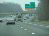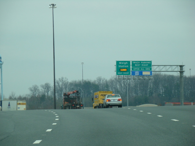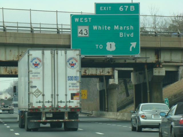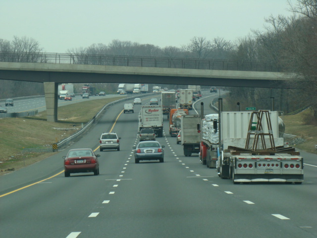 These pictures show I-95 northbound at exits 67A-B as it appeared while construction work was in progress to add the express toll lanes. Exits 67A-B have single been combined into a single exit.
