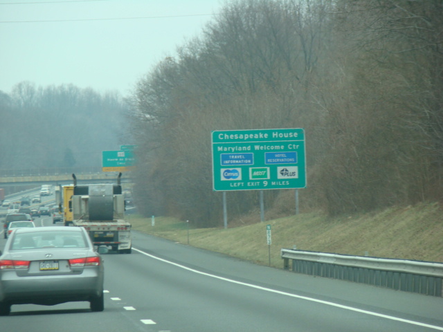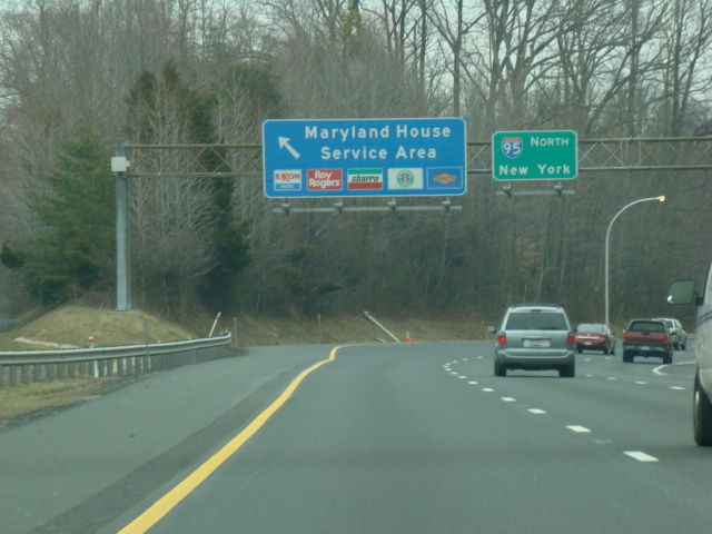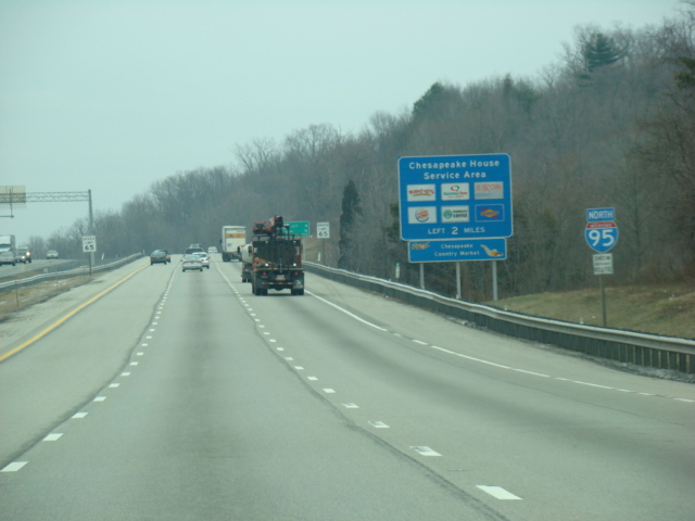 These signs used to mark the Chesapeake House Service Area. They were replaced with new signs on the left side of the highway that clearly mark the service area as a left exit.