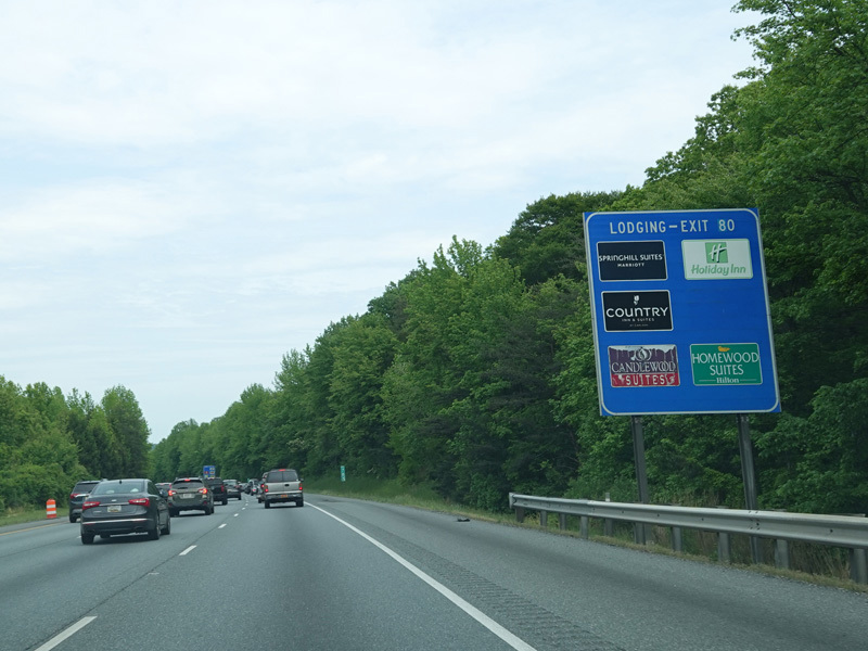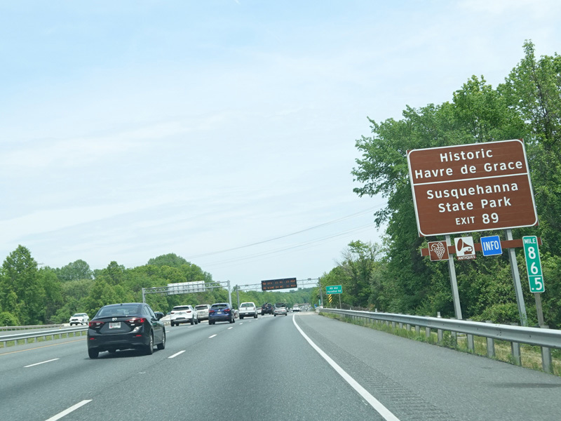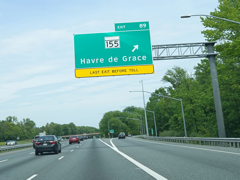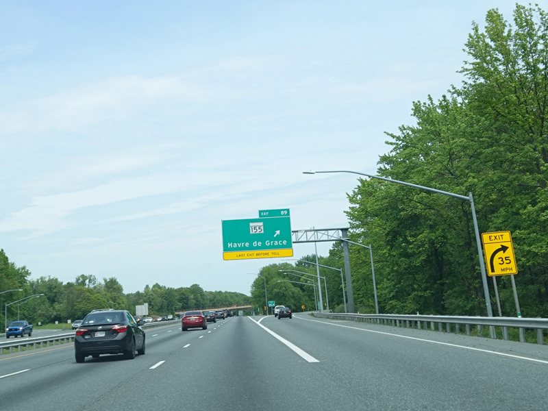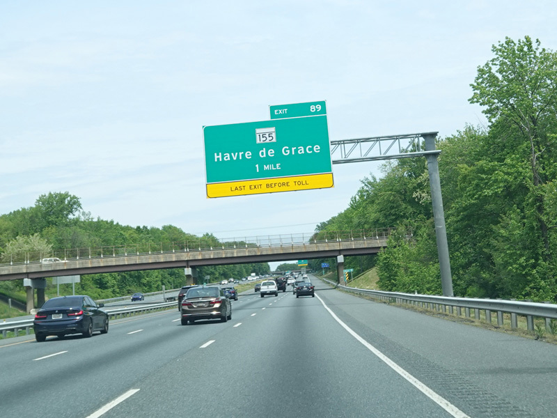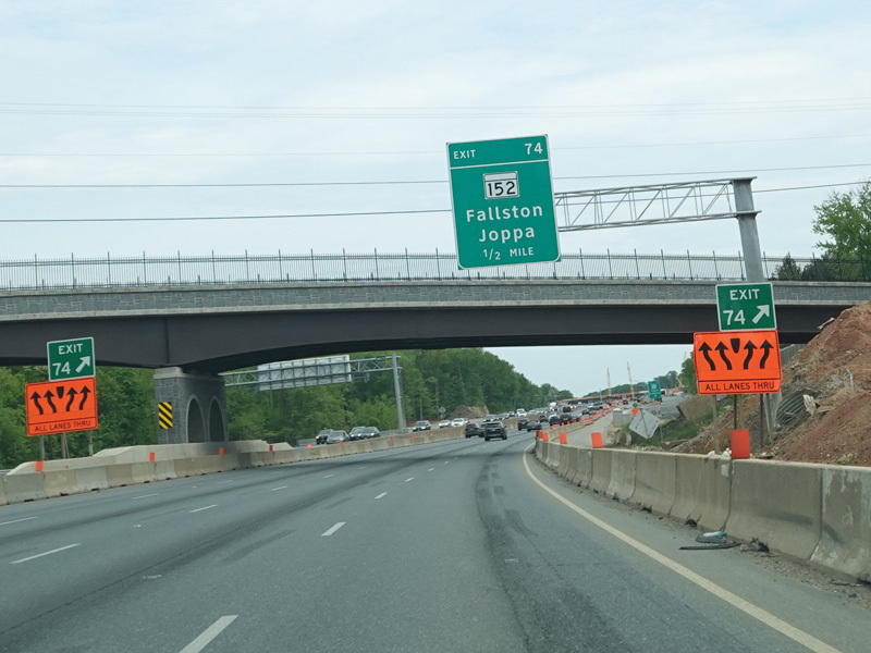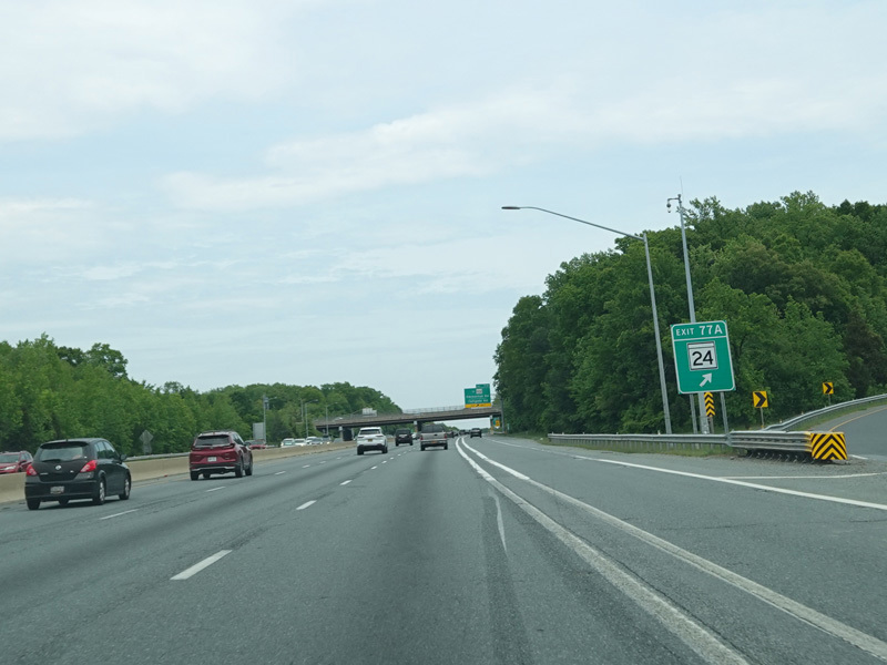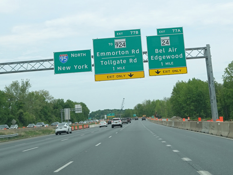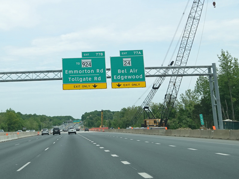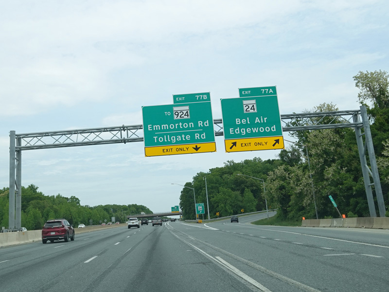 Exit 77A is for Vietnam Veterans Memorial Highway (MD 24). Exit 77B is for Emmorton Road (MD 924) and Tollgate Road.