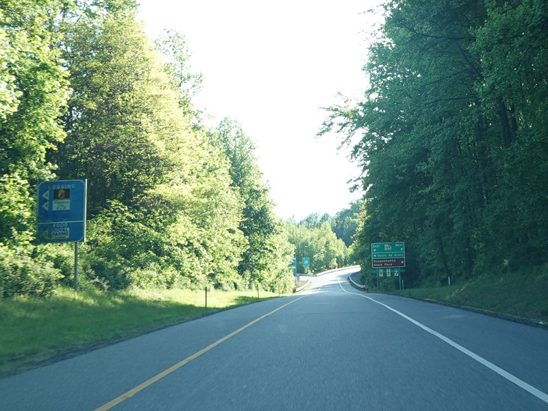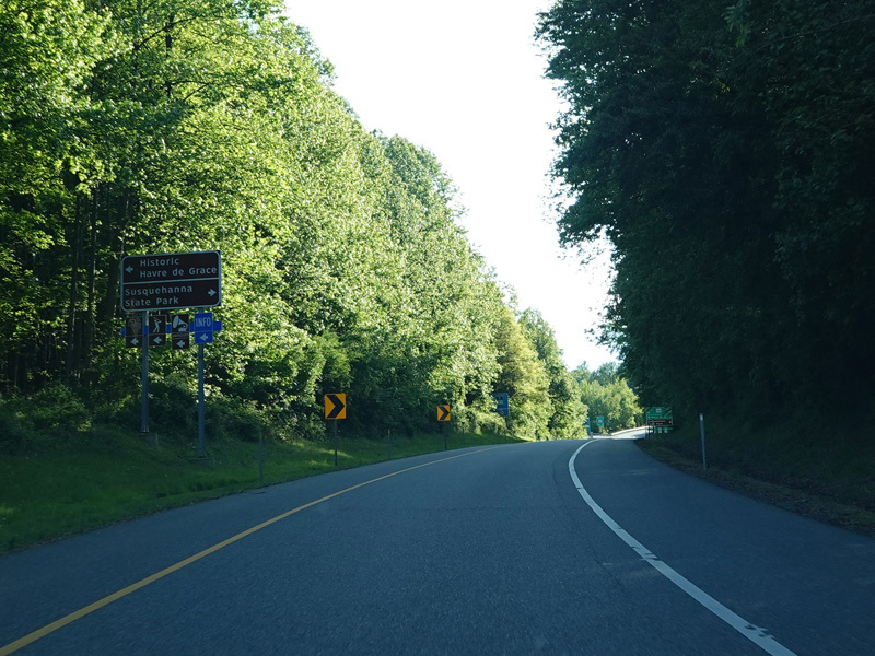 The ramp for exit 89 from southbound I-95 splits. Bear left to go east on Level Road (MD 155) or right to go west.