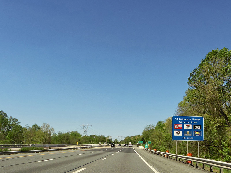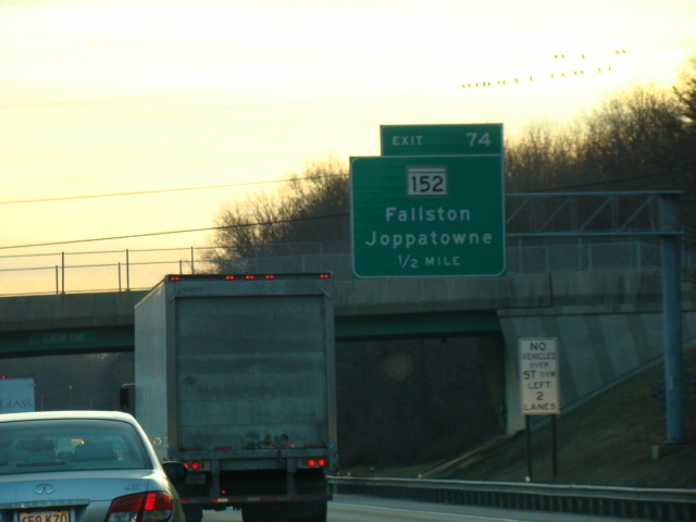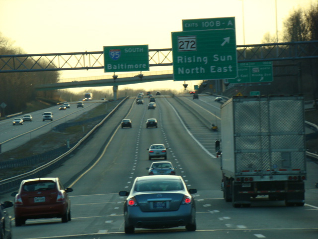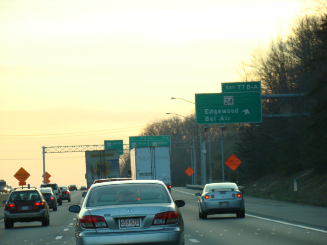 These pictures show I-95 southbound at exits 77B-A as it appeared before the interchange was reconfigured to provide access to Emmorton Road (MD 924).