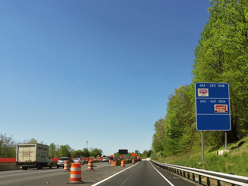 These pictures show the approach to exits 100B-A as it appeared while construction work was in progress on this section.