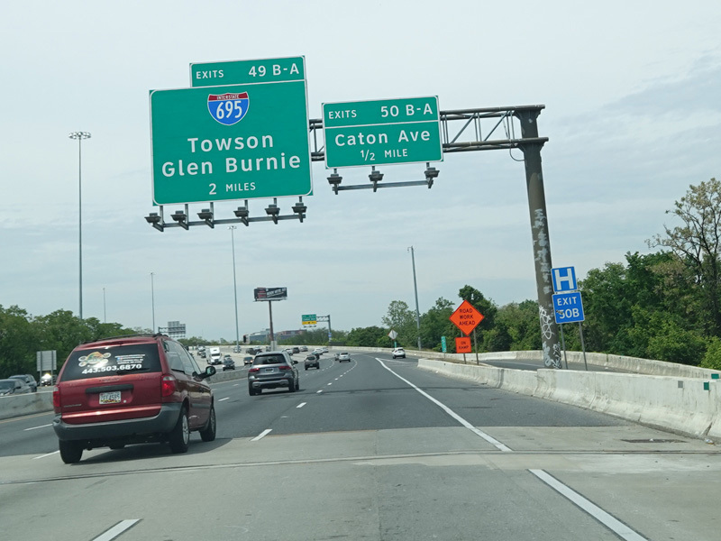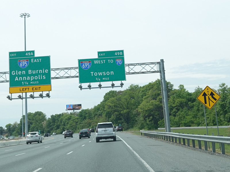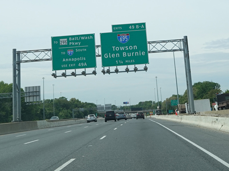 Exits 49B-A are for the Baltimore Beltway (I-695).