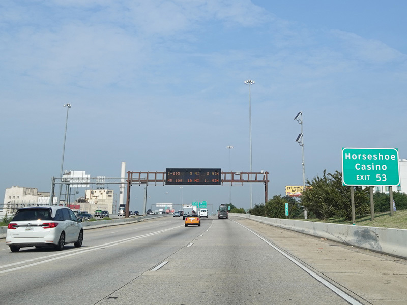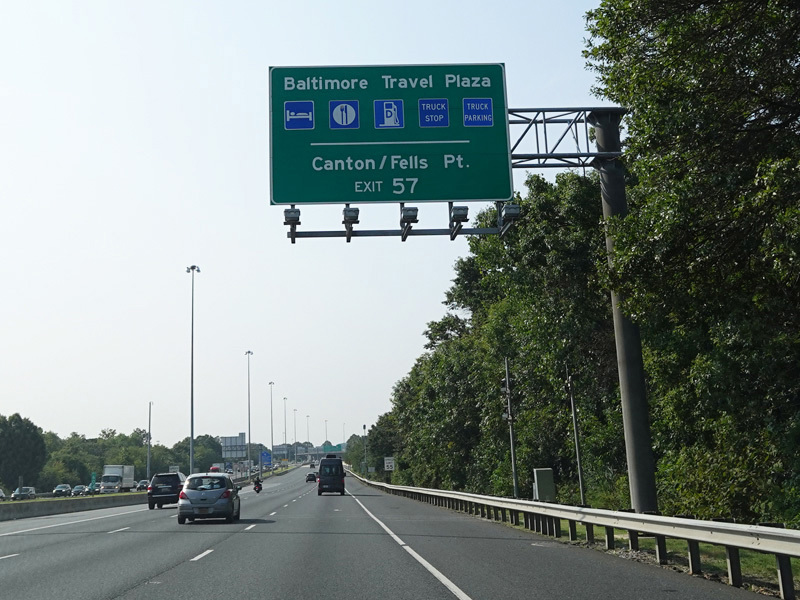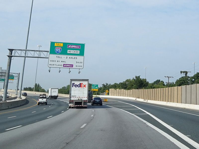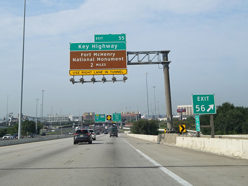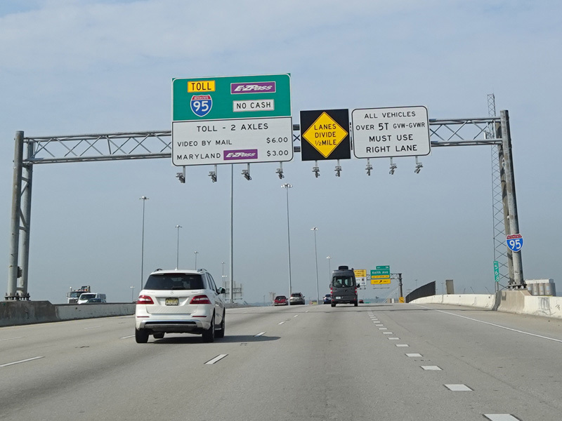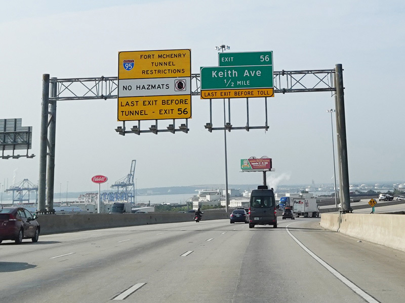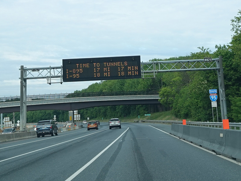 The Fort McHenry Tunnel carries I-95 under the Patapsco River. There is a cashless tolling gantry right before the entrance to the tunnel.