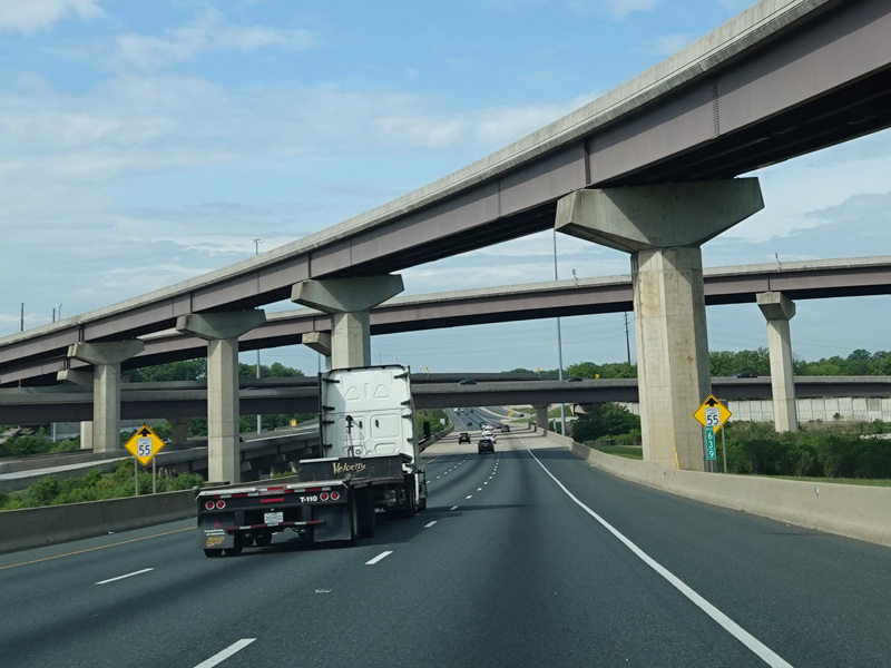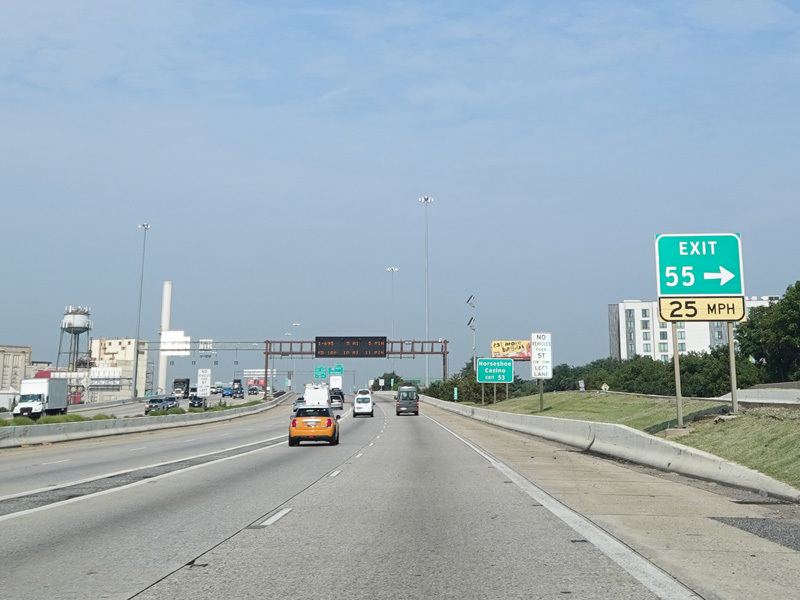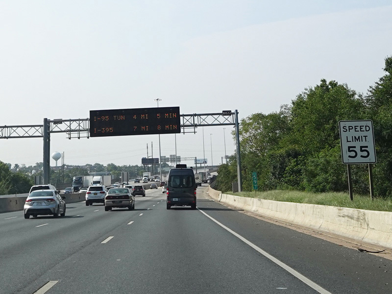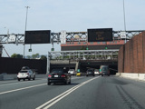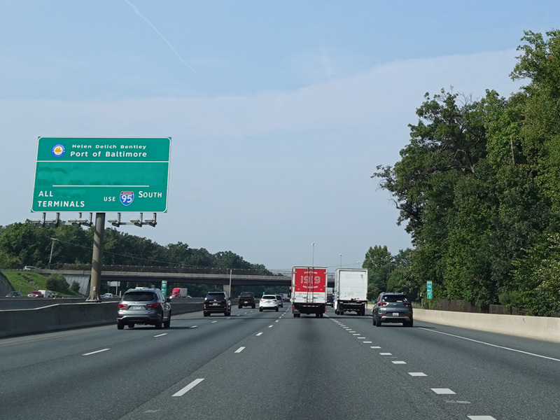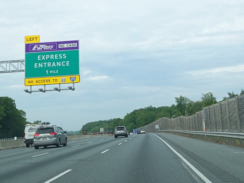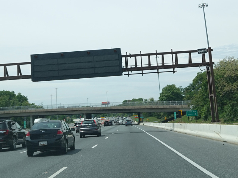 The Fort McHenry Tunnel carries I-95 under the Patapsco River. There is a cashless tolling gantry right before the entrance to the tunnel.
