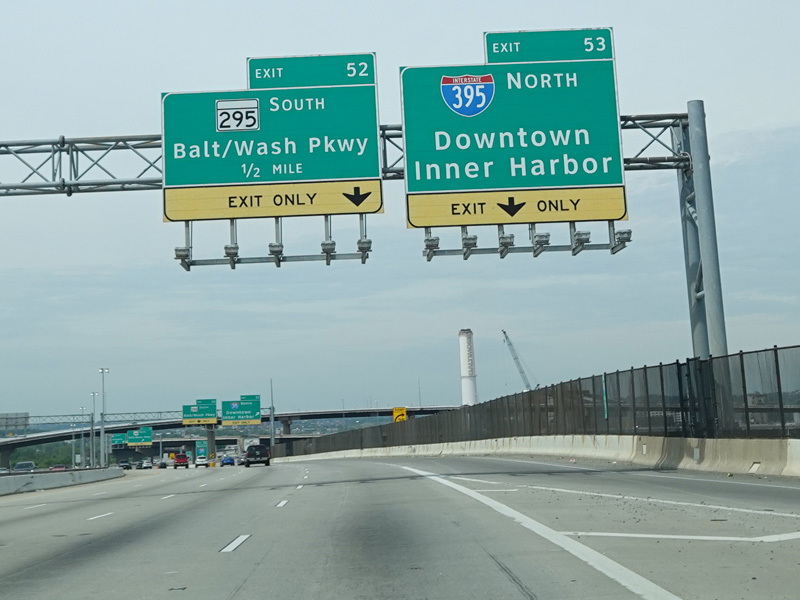 Exit 53 is for I-395 north. Exit 52 is for the Baltimore-Washington Parkway (MD 295) south.