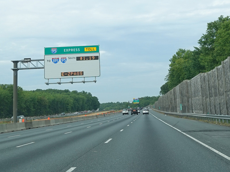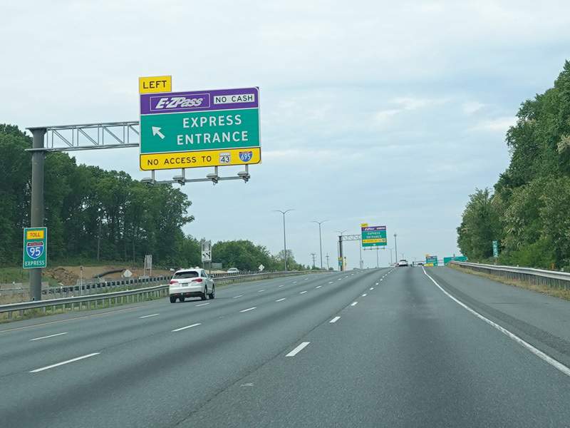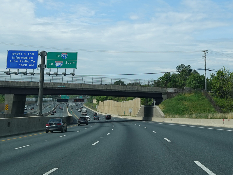 There are express toll lanes that begins on the left here and extend south toward Baltimore.