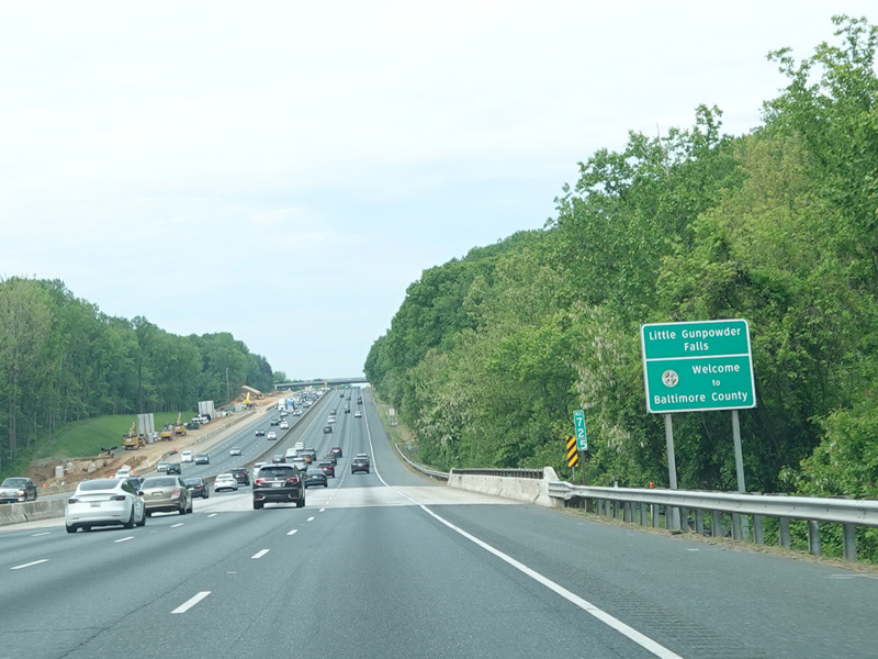 I-95 continues south into Baltimore County. There are bridges over Little Gunpowder Falls and Big Gunpowder Falls.