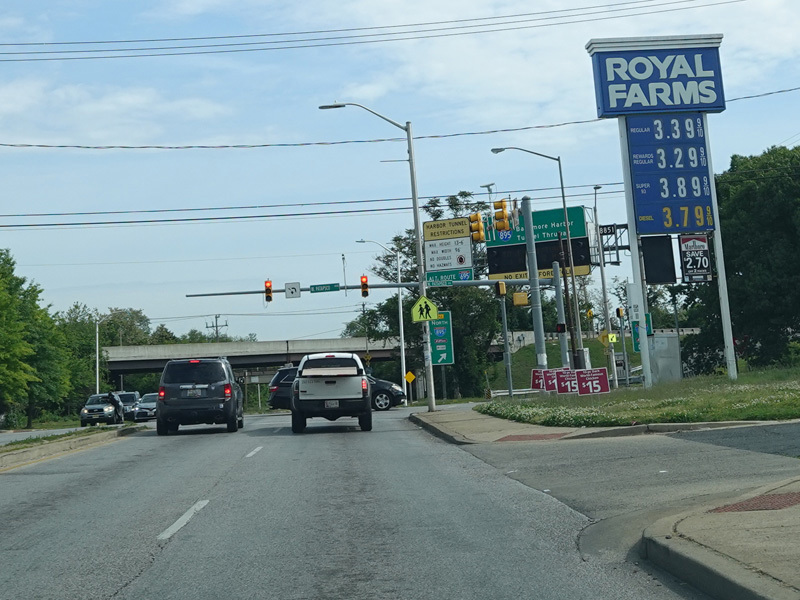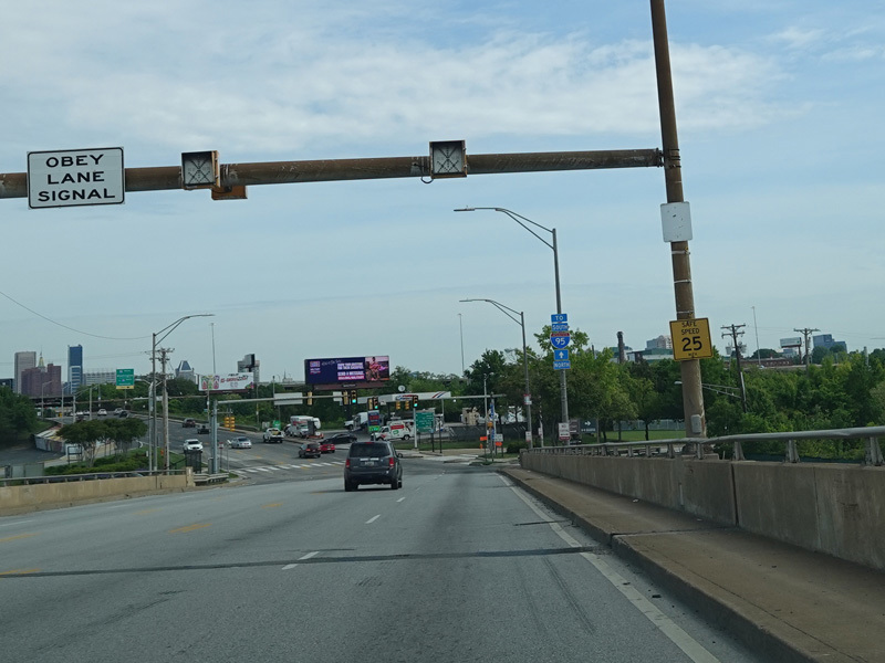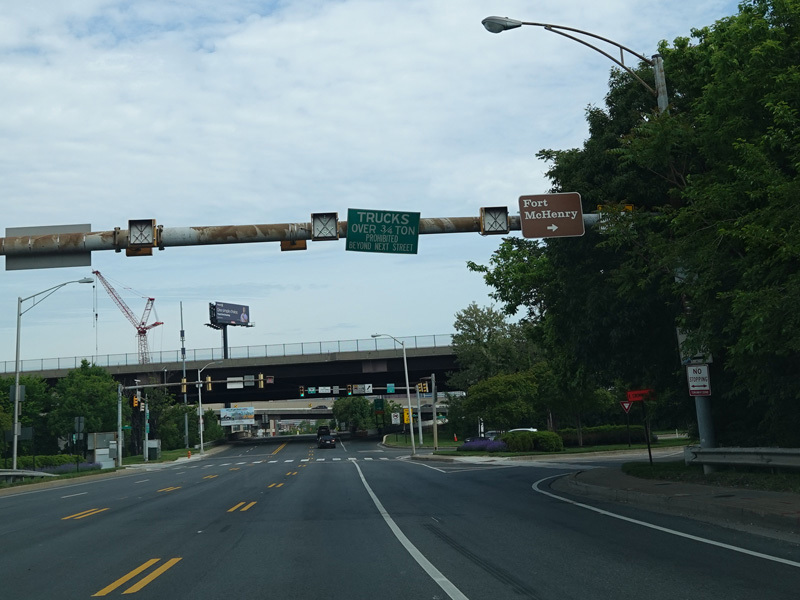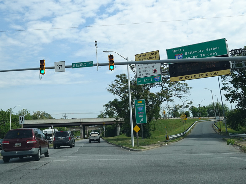 There is a traffic light at West Patapsco Avenue, immediately followed by an entrance to the Baltimore Harbor Tunnel Thruway (I-895) north. There is no southbound entrance here.