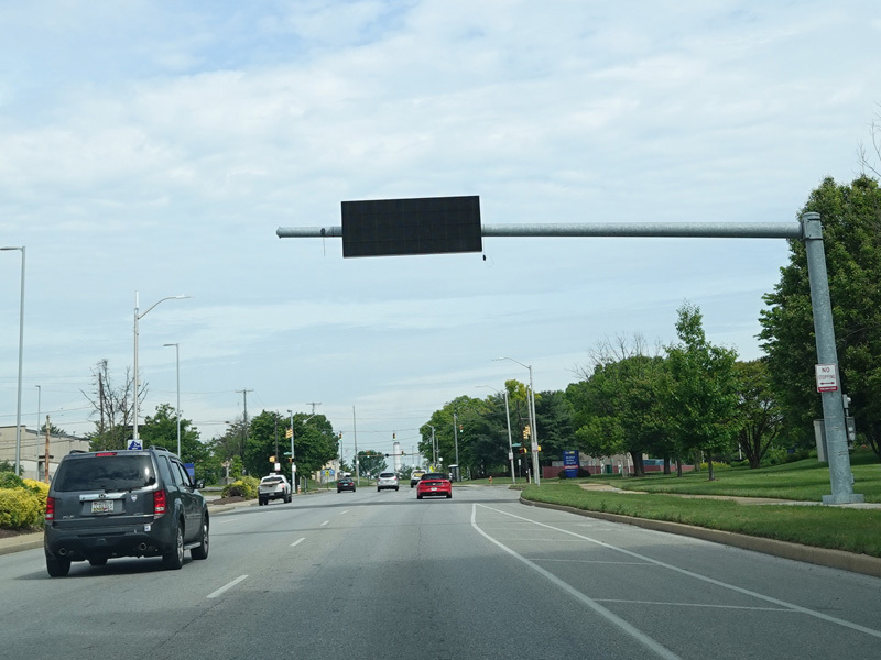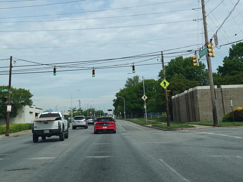 Governor Ritchie Highway runs north as a four-lane divided road with a grass median.