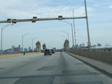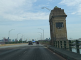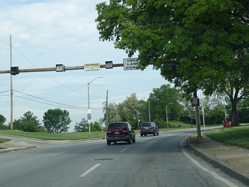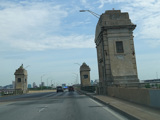 The northbound and southbound sides merge back together and are known as Hanover Street. The Vietnam Veterans Memorial Bridge carries MD 2 over the Middle Branch of the Patapsco River.