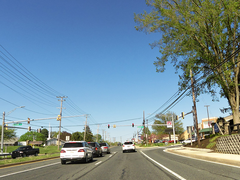 There is a traffic light at Fountain Green Road (MD 543). Turn left to go north or right to go south.
