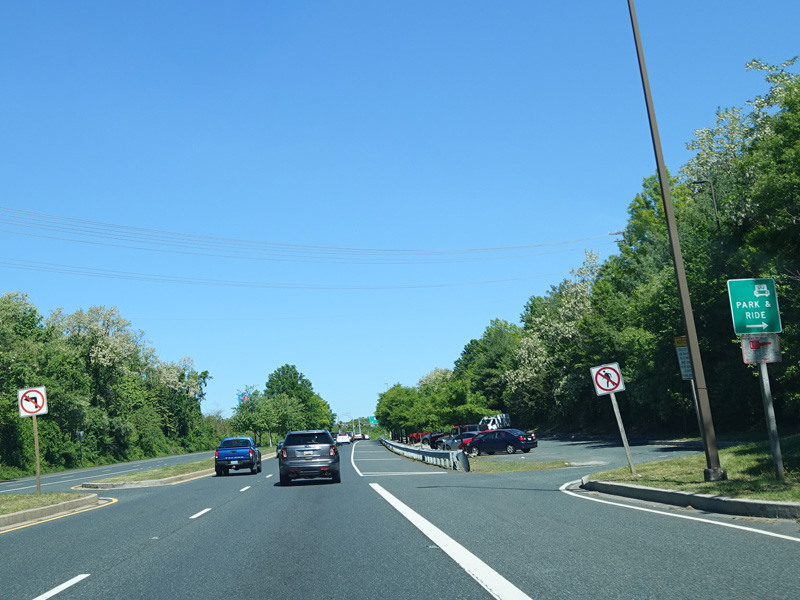 There is a Park and Ride lot, followed by a traffic light at Edgewood Road. Turn right here for access to Van Bibber Road.