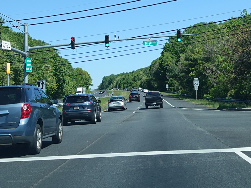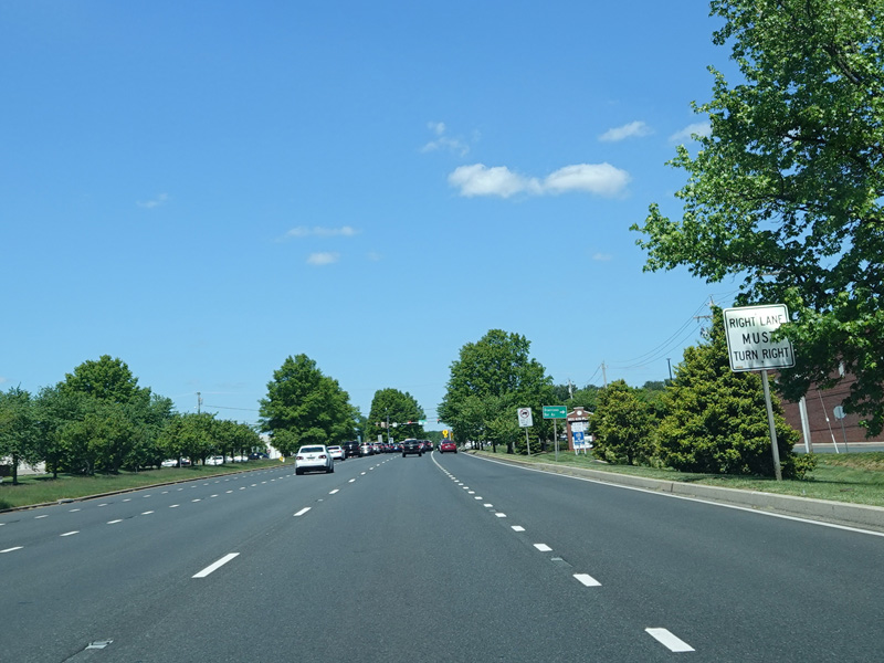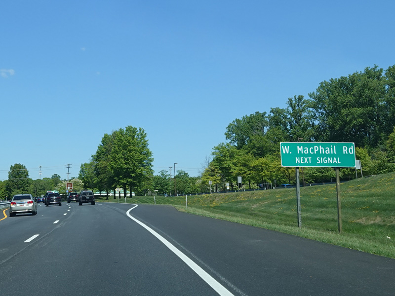 There is a traffic light at Philadelphia Road (MD 7). Turn right to go east or left to go west.