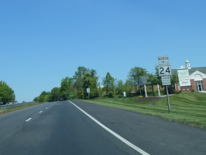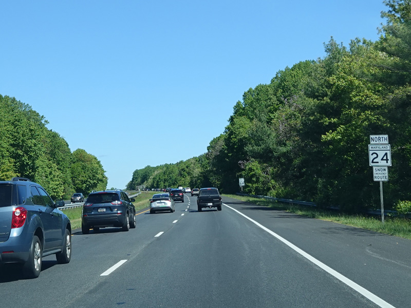 MD 24 merges into the northbound side of the Bel Air Bypass (US 1).
